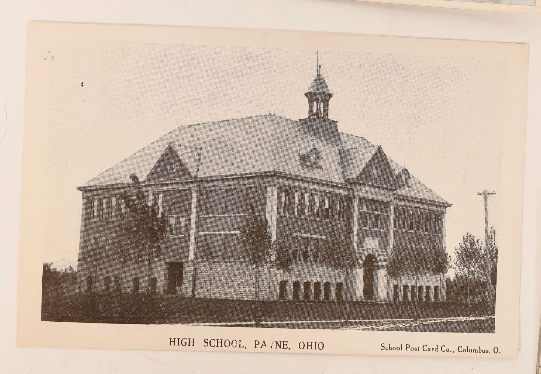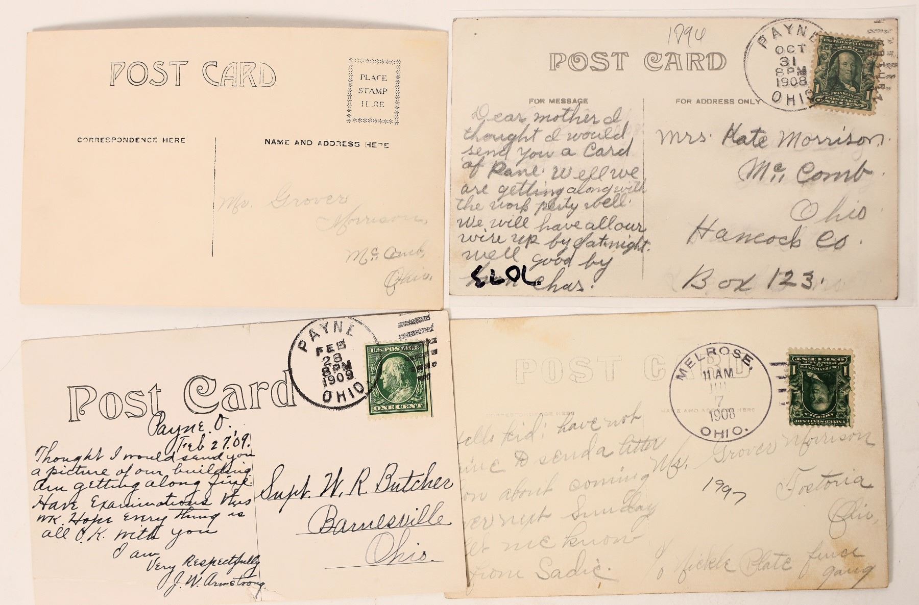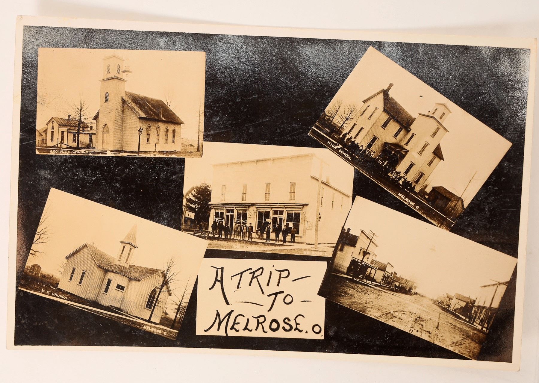 Collection of 4 postcards from Paulding County, Ohio, c1908-09. Catholic Church & high school in Payne, church and various building collage in Melrose. 3 RPCs.[ Ohio