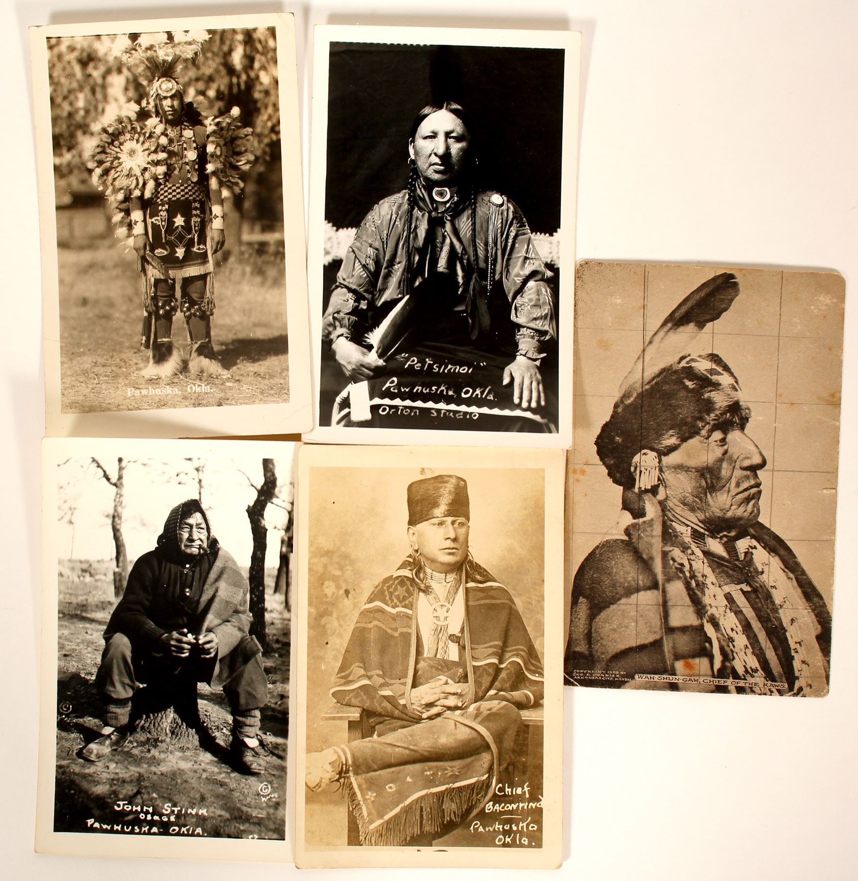 Lot of five: four white borders from Pawhuksa, OK: John Stink, Chief Baconrind, Petsimoi. Wah-Shun-Gah, Chief of the Kaws.