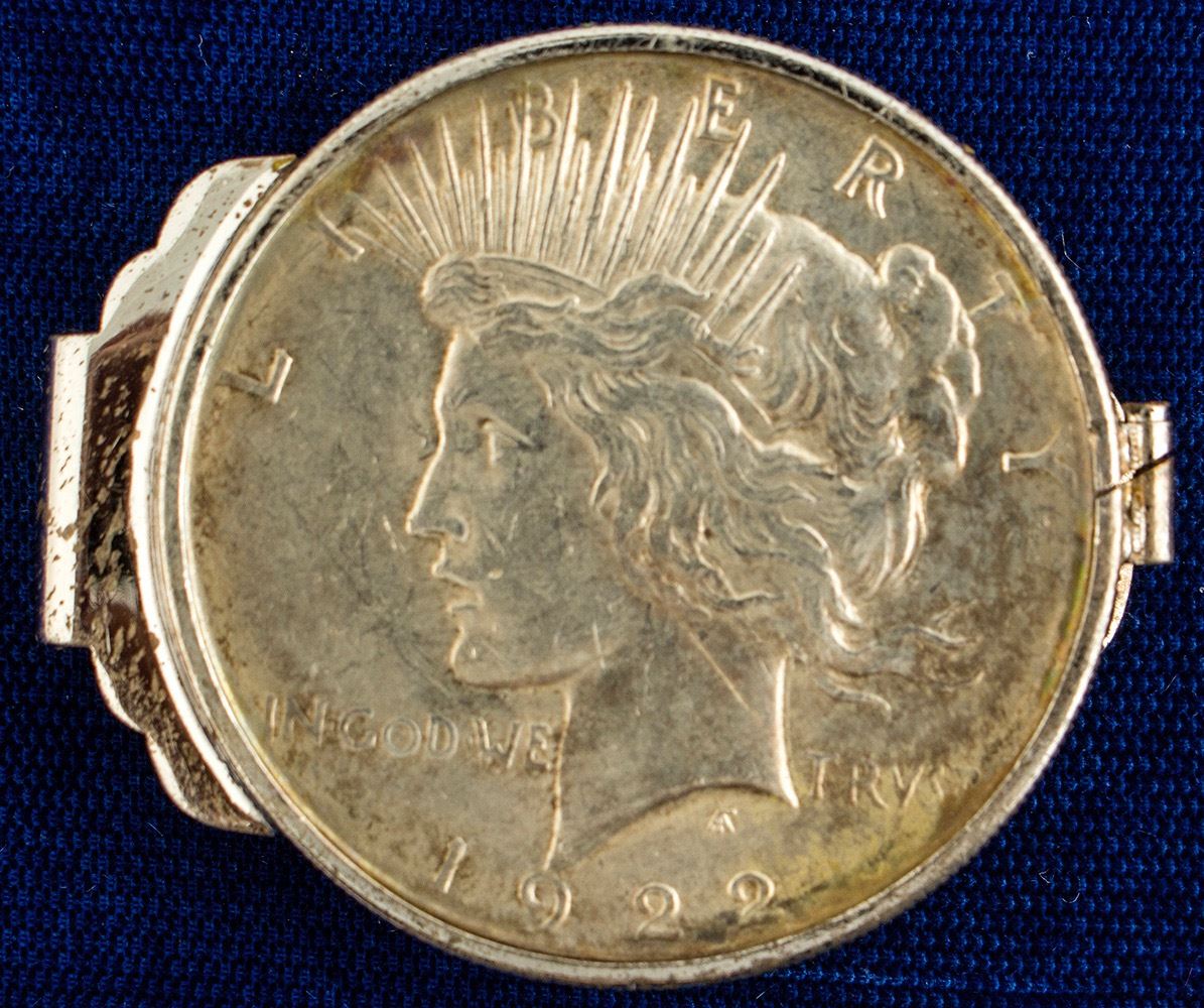 1922 Peace Dollar mounted in sterling silver money clip. Date: 1922 Location: HWAC# 47364