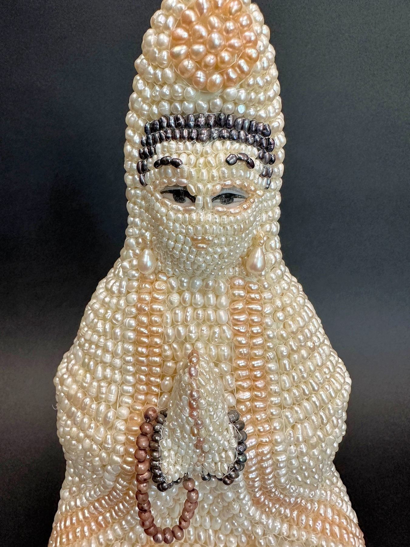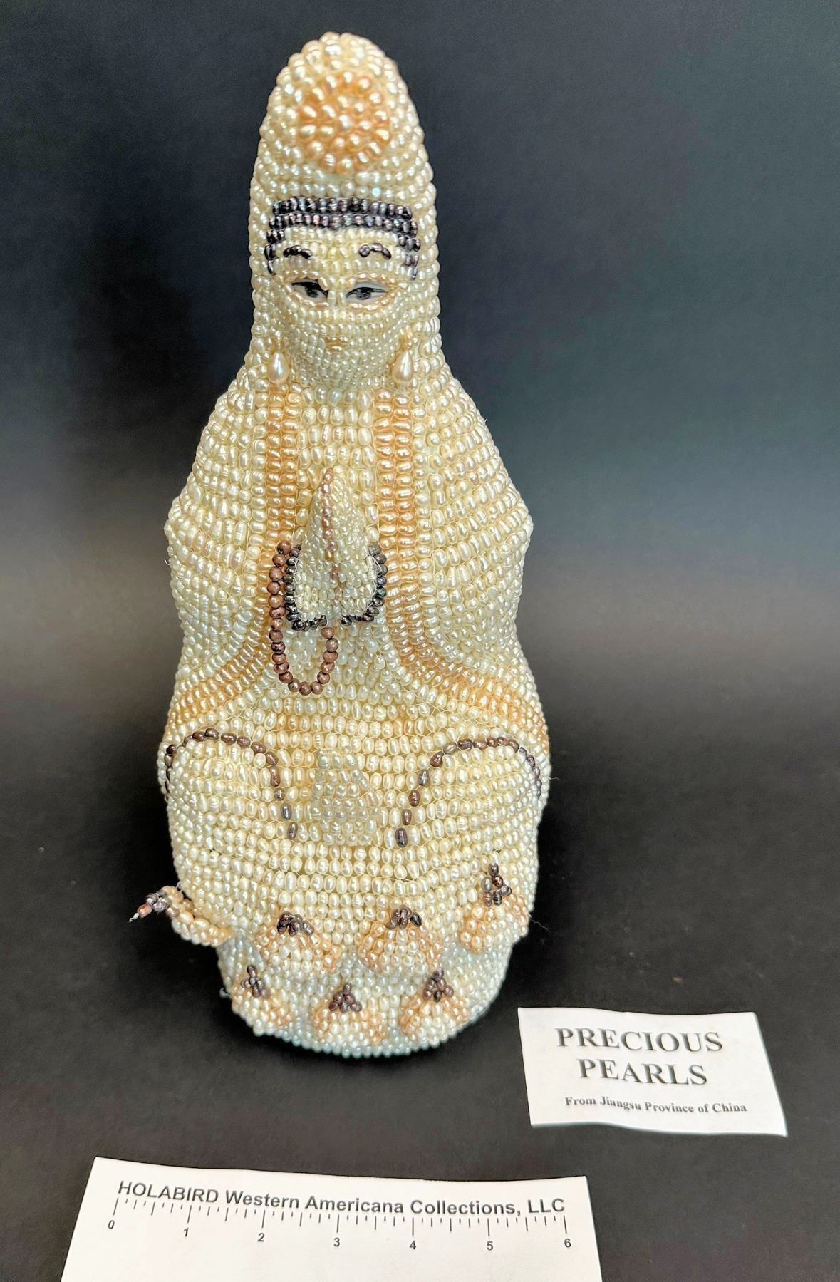 Large, nicely detailed Empress figurine, made of real freshwater pearls from the Jiangsu Province of China. China started culturing pearls in 1968 and has created a vast array of figurines with the industrial art of pearls and this is an exquisite example of their craftsmanship. Chunlin Collection.