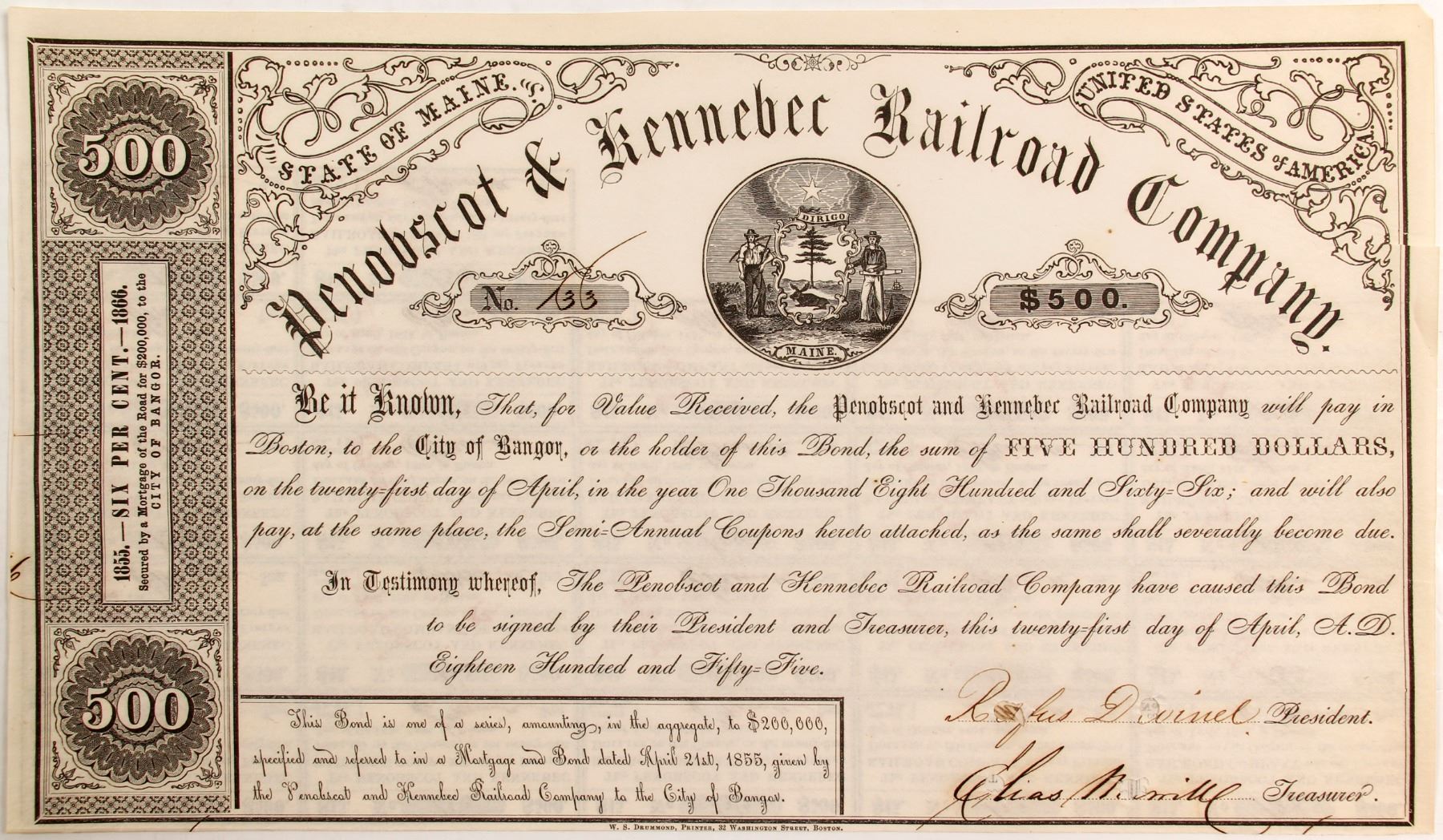 I/U #133 $500 signed by President David. 1" right tear. Prag Collection. State: City: Date: 1853 HWAC# 84228