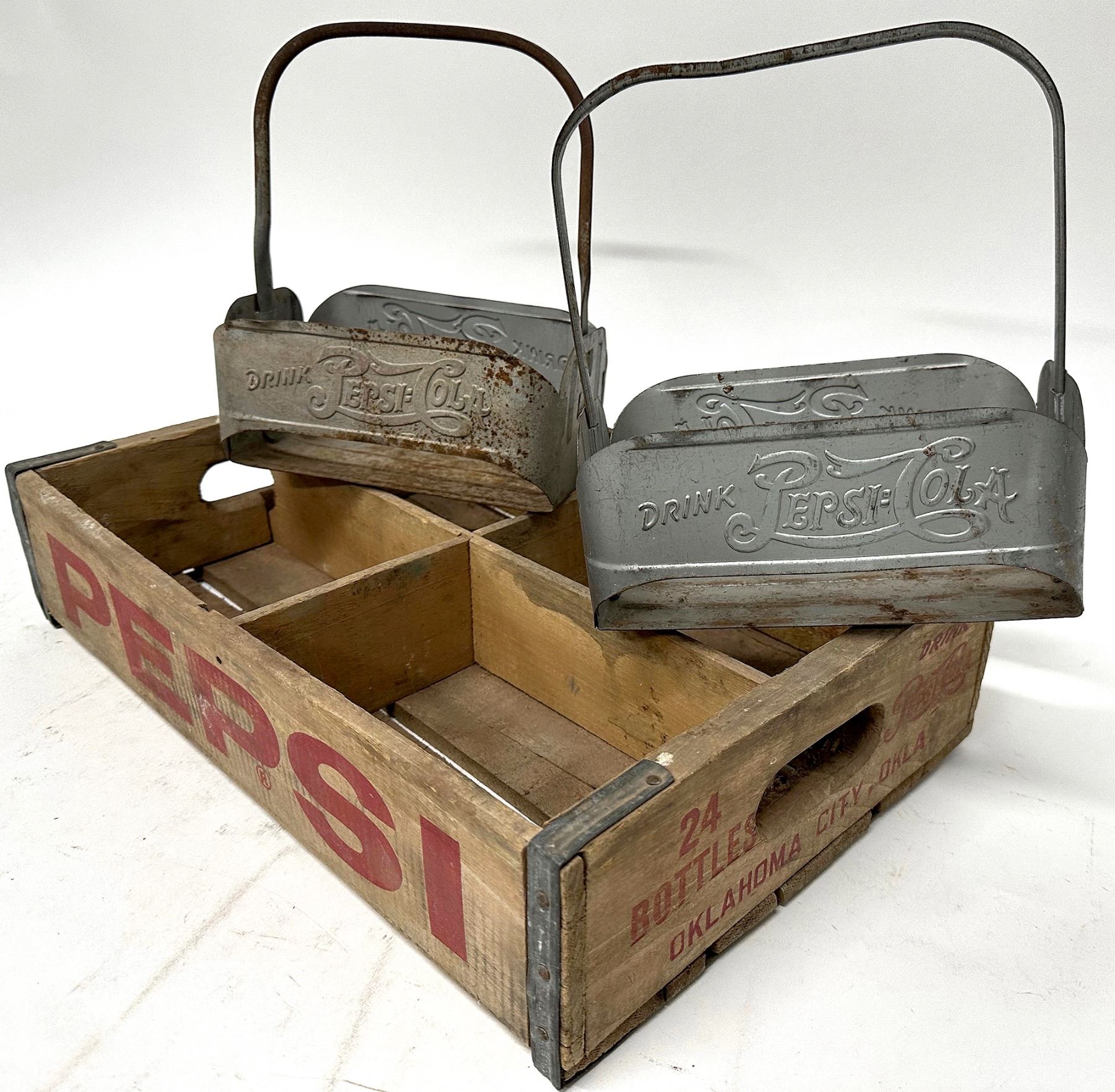 Vintage Pepsi Collectibles. 1) Wood Box, Oklahoma City, Ok 18.5 x 12 x 4".