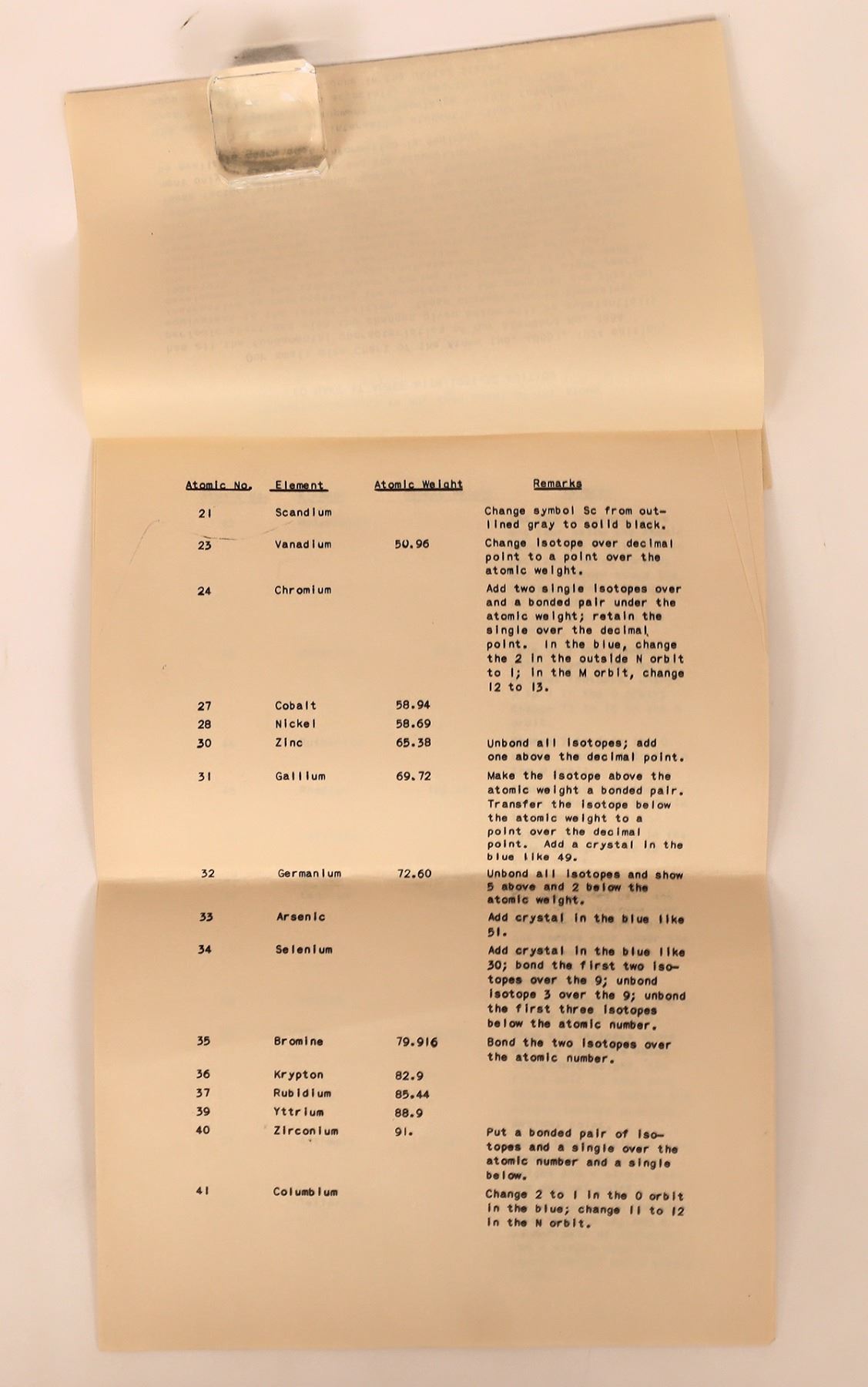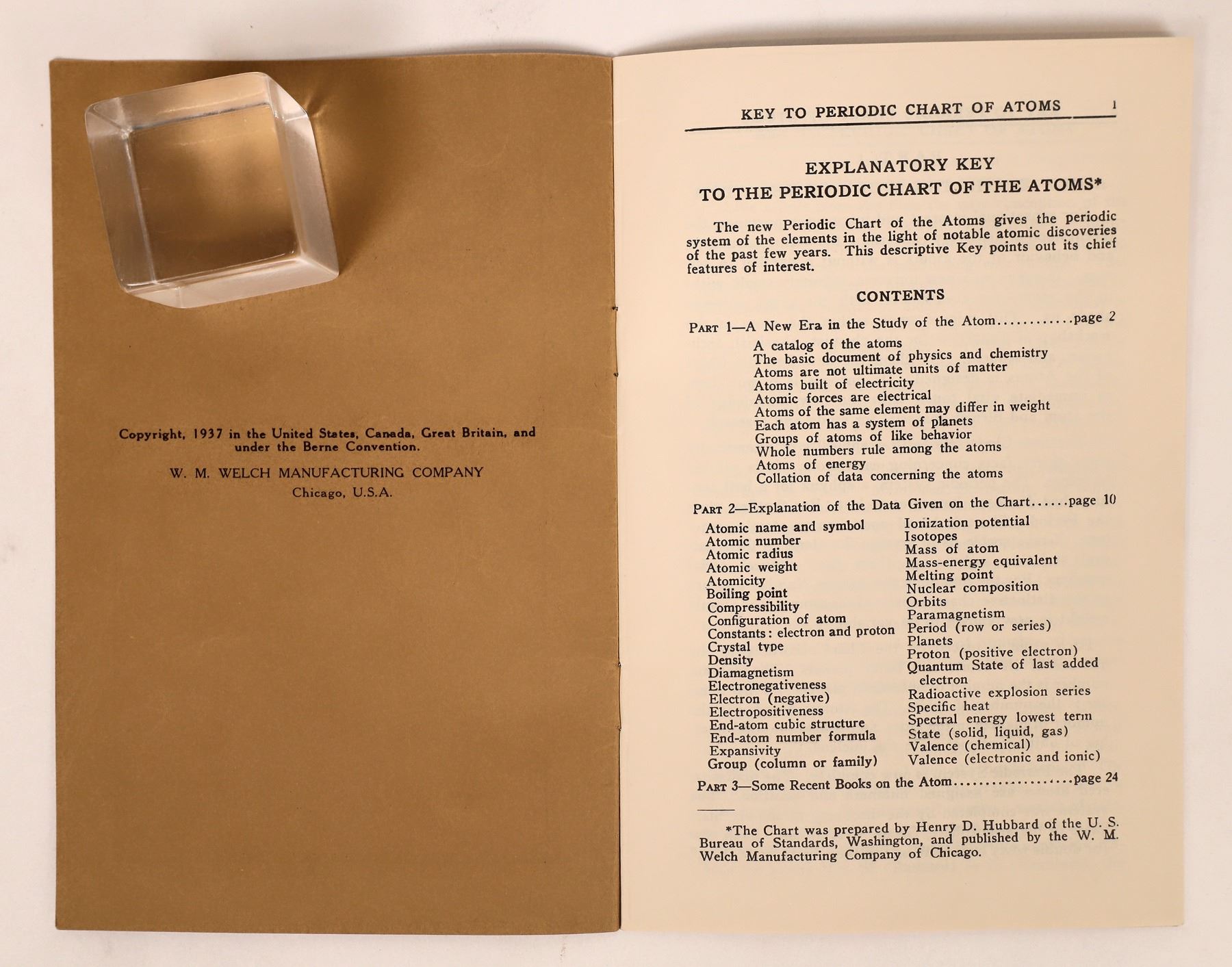 Rare, A Key to the Periodic Chart of the Atoms by Henry Hubbard. 1937, in original paper envelope.