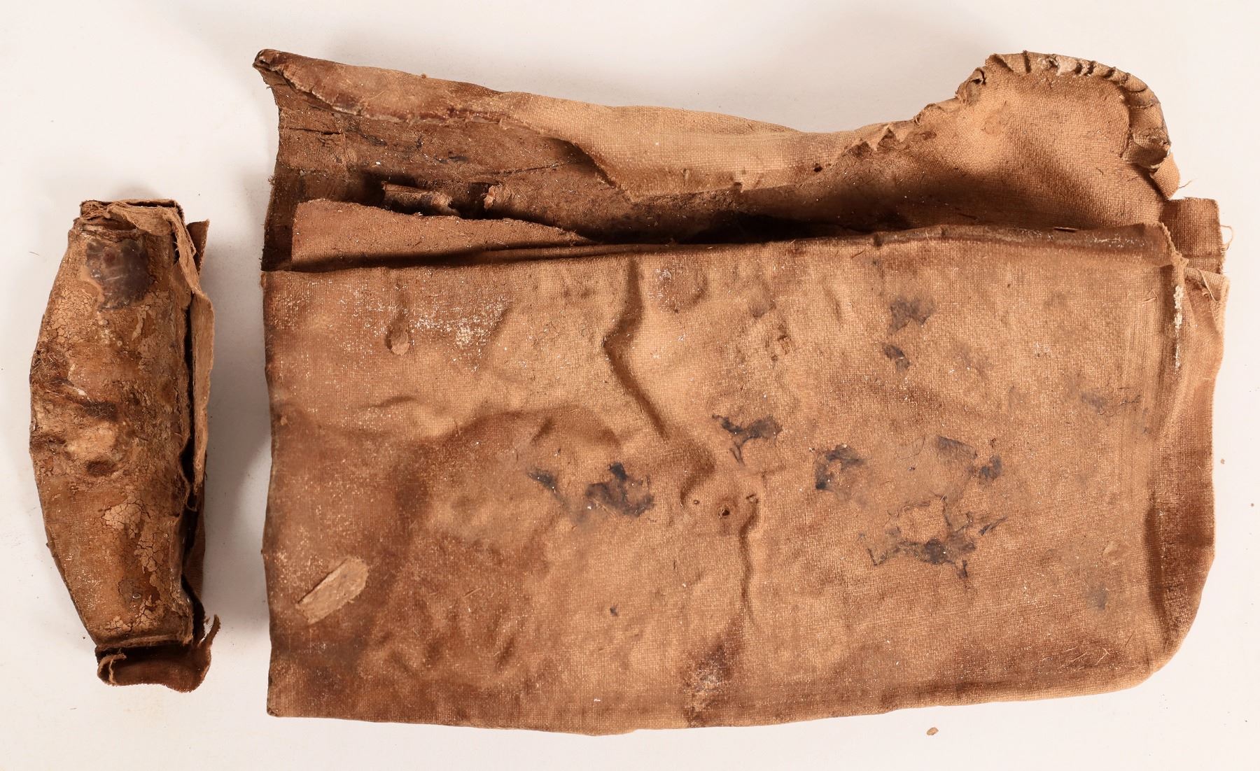 Personal Papers Pouch from the SS Central America. Measures approximately 7 x 4.5 inches. Bottom measures approximately 3.5 x 1 inches. Probably made of leather. The papers have dissolved over time.