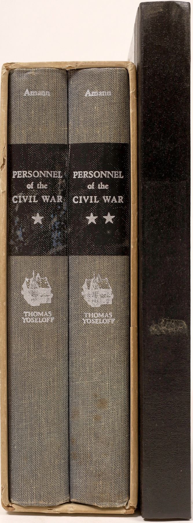 A boxed set of two volumes "Personnel of the Civil War" by William Frayne Amann c1961. These are near new, with very little scuffing and just the usual wear from use. The next is "Soldiers, Sailors and Marines of the Civil War" c1916 the survivors and residents of the state of Massachusetts. This appears to be a softcover publication that was fitted with boards. It's also in very nice condition. Please see photos for more detail and condition.