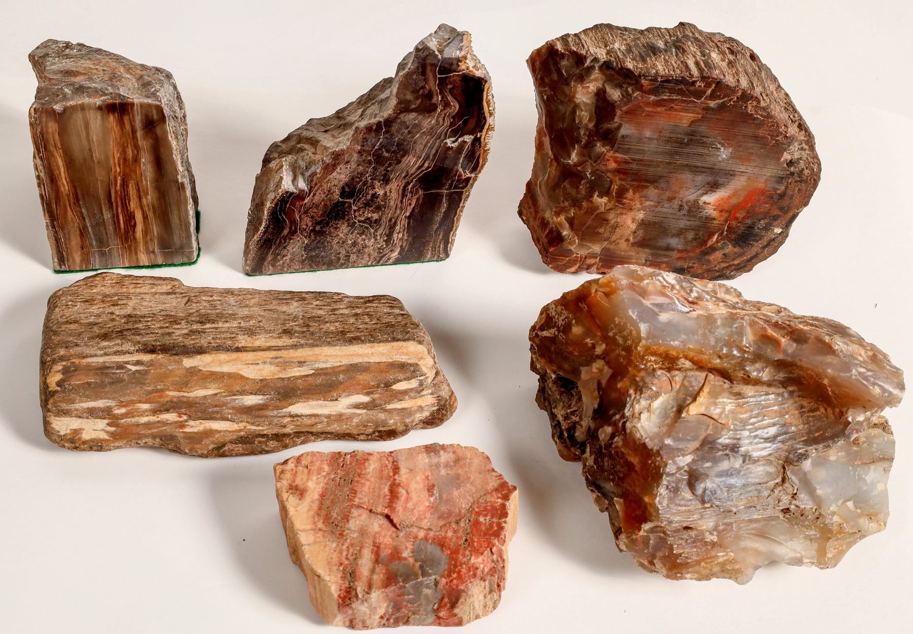 About 14 pounds of petrified wood. 6 pieces ranging from about 2.5x3.5" to 4.5-5.25".