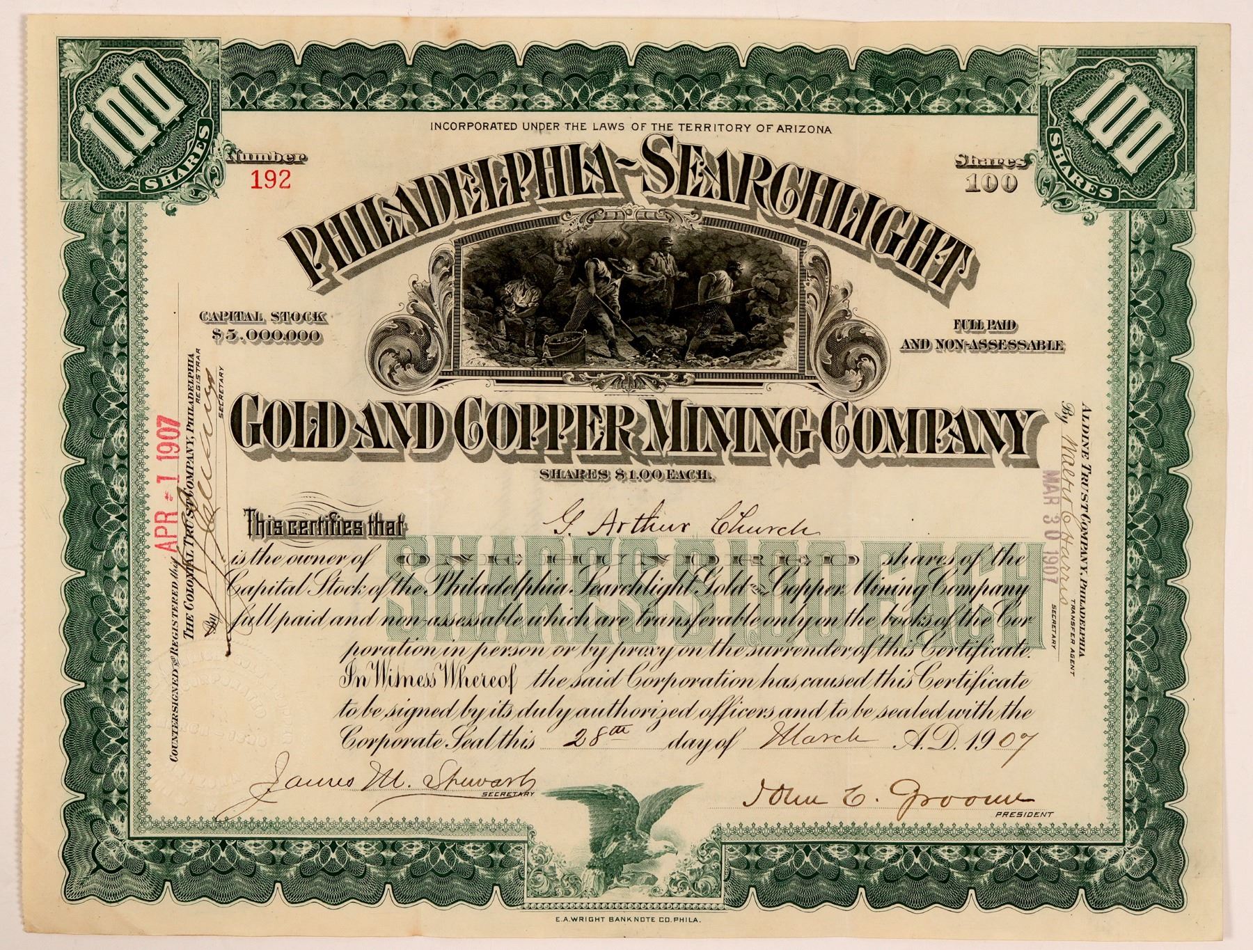 I/U # 192 G Arthur Church, signed by president Groom. Underground miner vignette