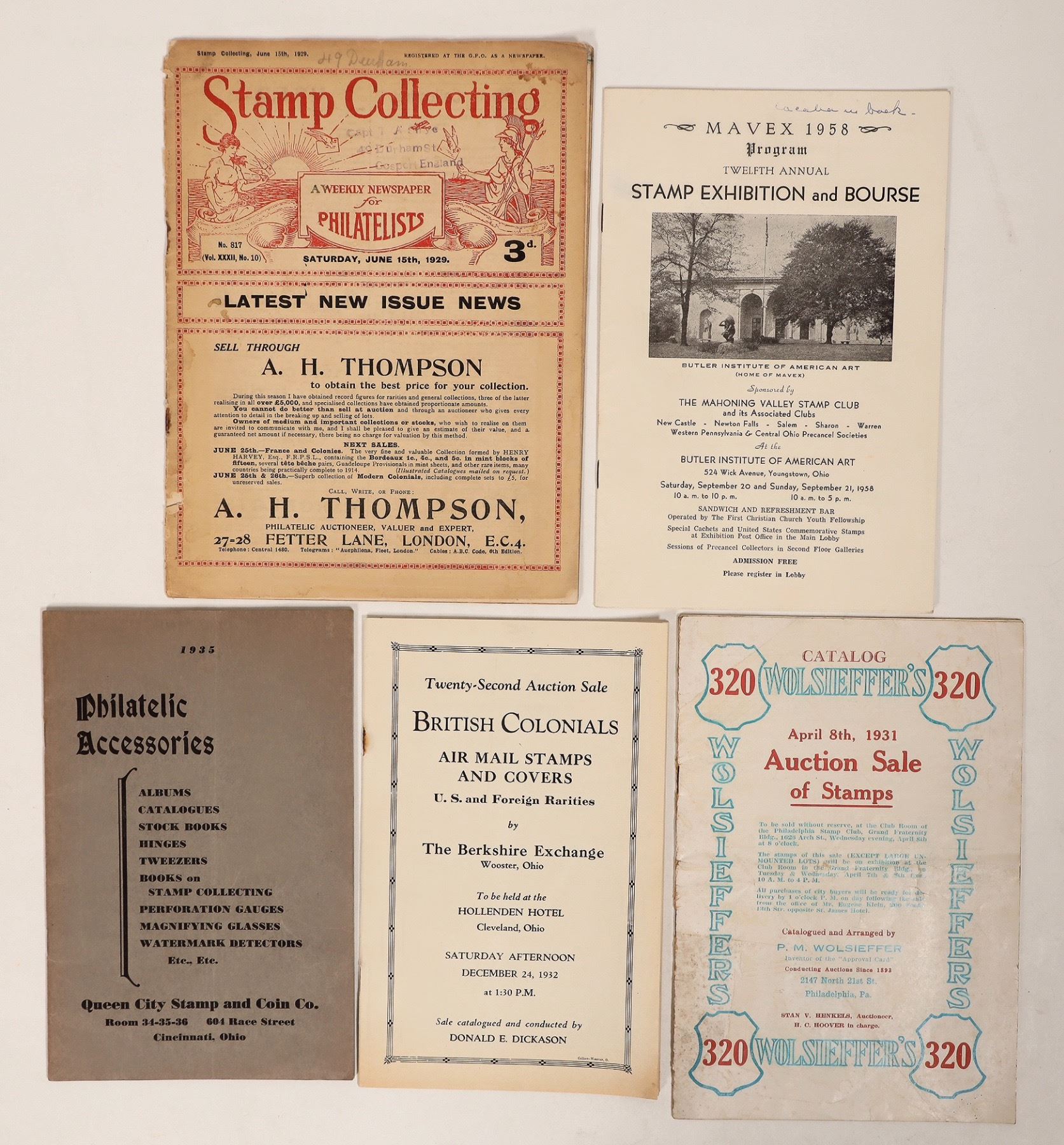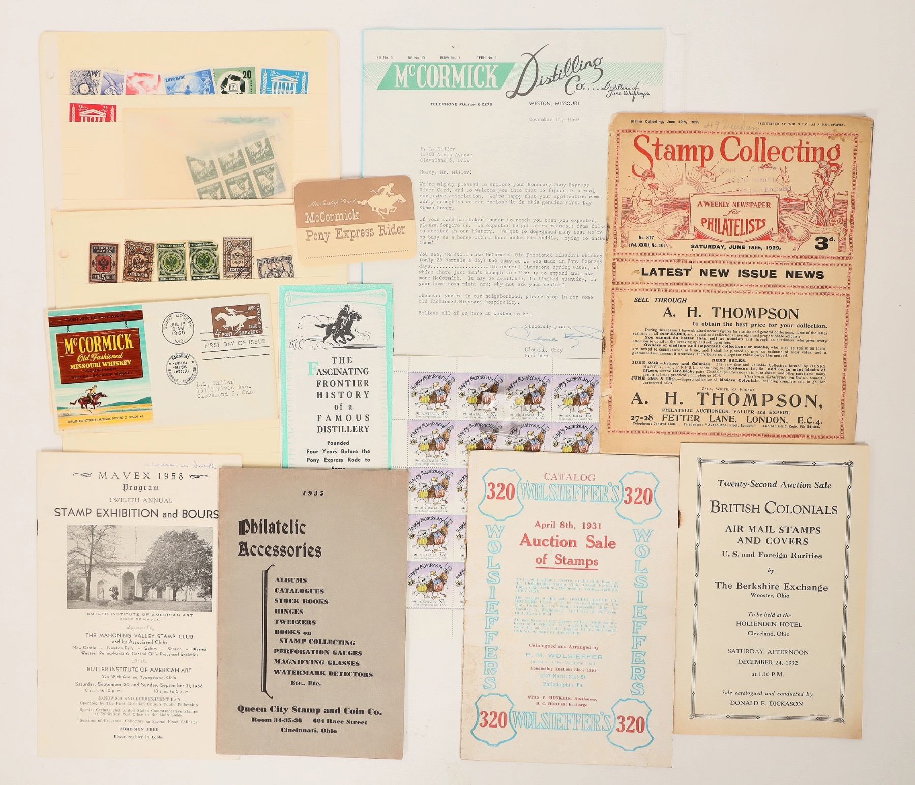 Stamps from UNESCO, Eastern Europe?, Pony Express FDC, Australia. 4 stamp collecting catalogs,1935 philatelic stamp accessories catalog.[