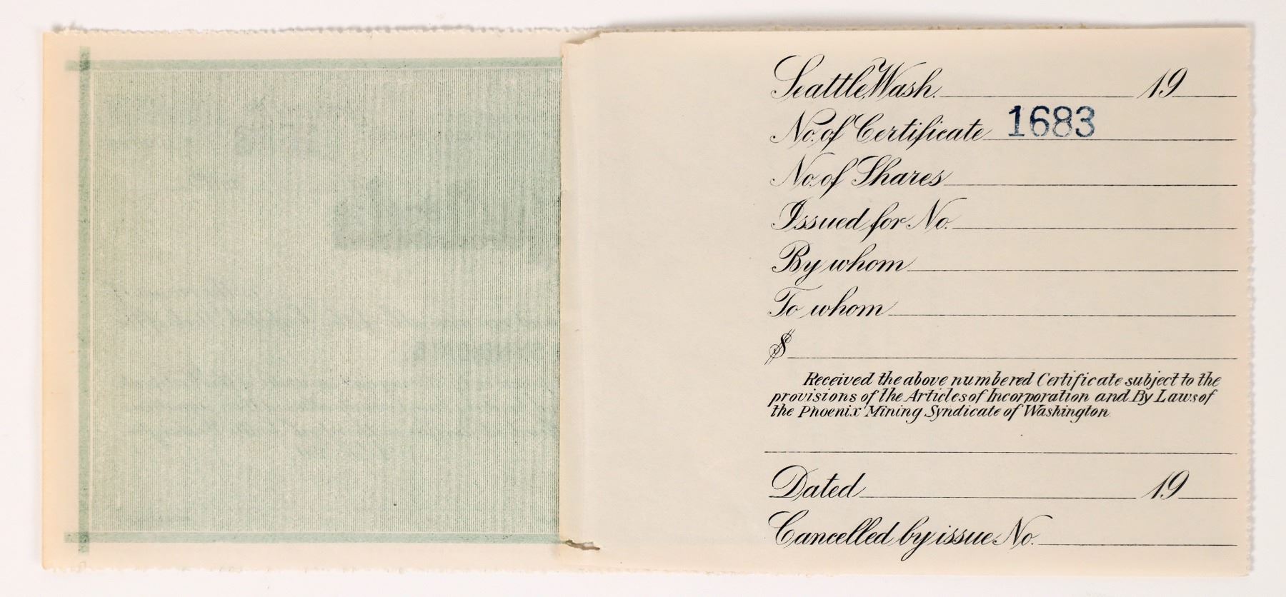 Phoenix Mining Syndicate blank stock certificate #1693. It is offering stock in the company for $1 per share. Please see photos for more details. Arizona 1900s