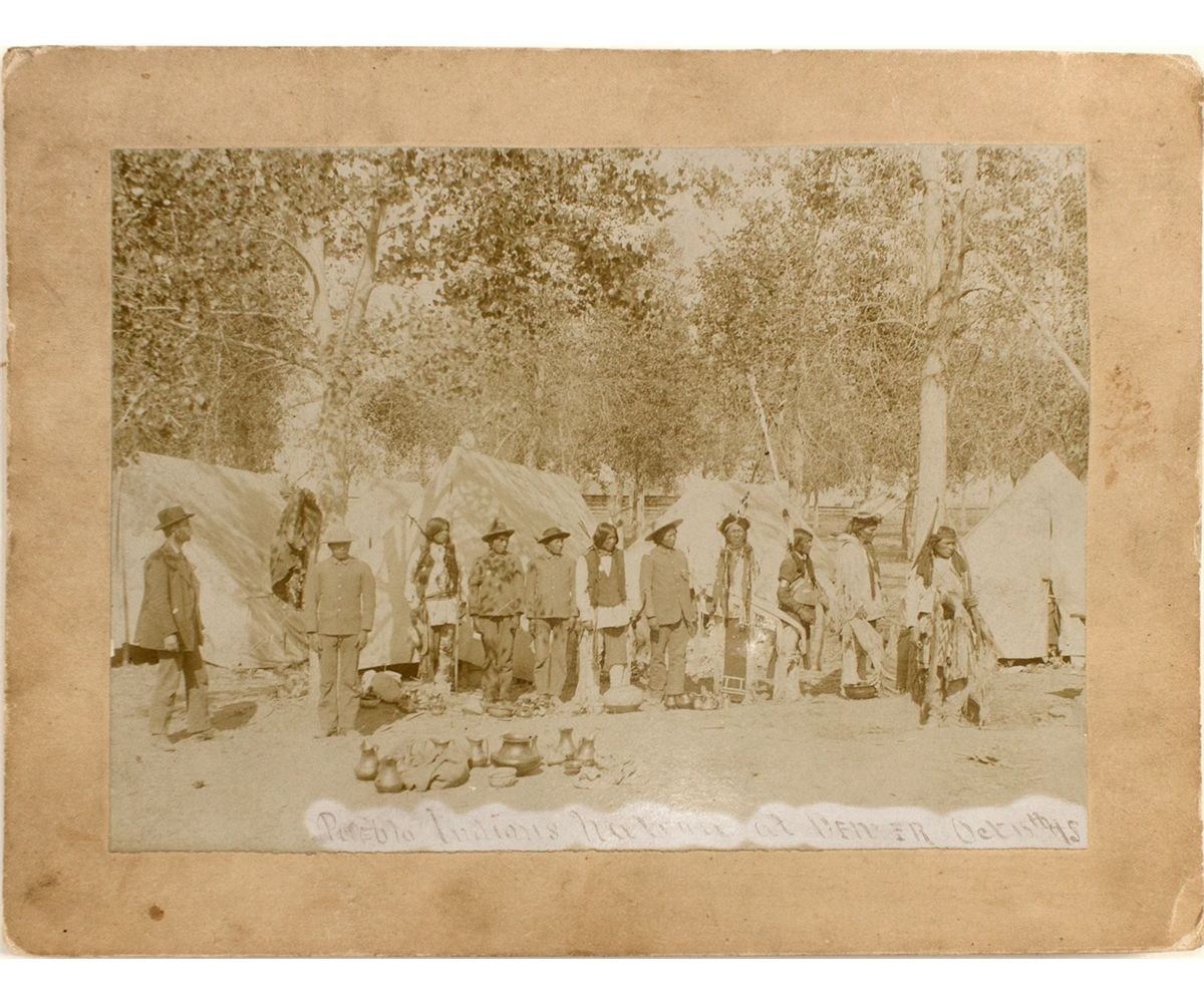 Faded photo of "Pueblo Indian natives at Denver Oct 18th, 15." From the Burger collection.