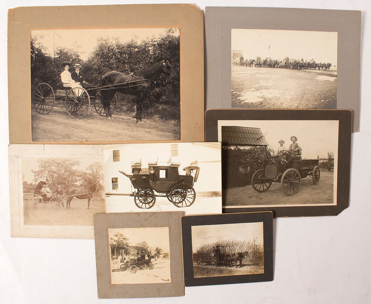 7 photo's (black & white) of horse draw carriages, wagon & buggies (1800's to early 1900's. Date: Location: HWAC# 55153