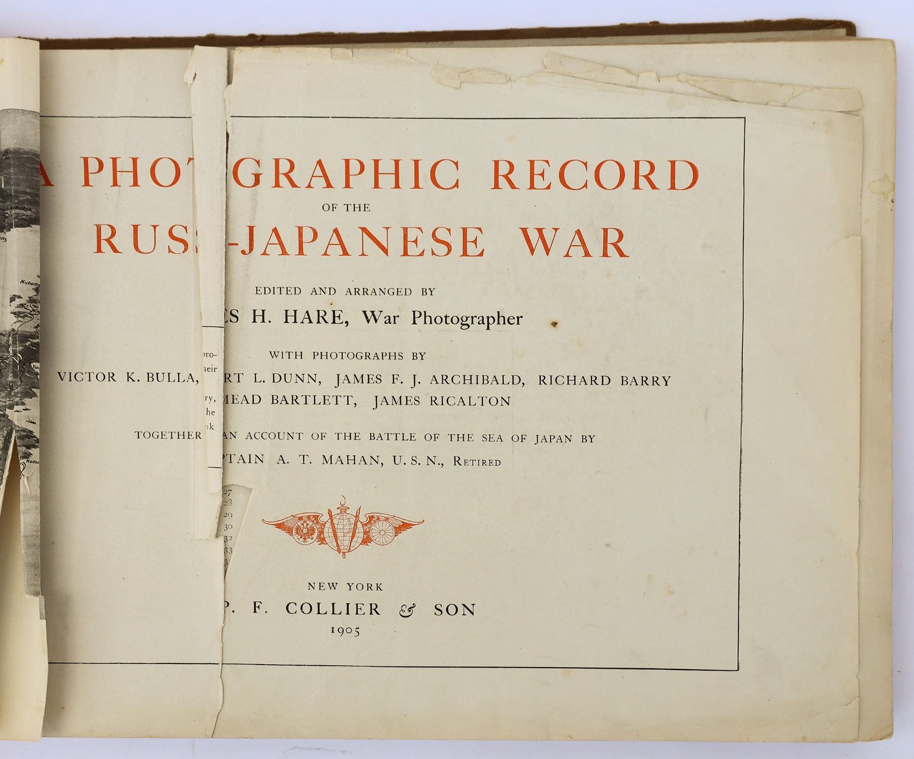 Fragile text containing numerous photographs edited and arranged by James H. Hare, War Photographer. Published in New York by P.F. Collier & Son 1905. Binding in rough condition; please handle with care. Very neat photographs.