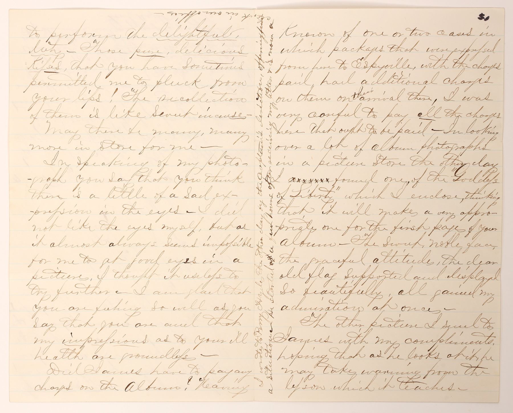An 1864 letter from one '___ S. Allen' (first name illegible) of Saint Louis, Missouri, to a close friend. The letter describes Allen's experiences looking through photo albums, selecting photos, and commenting on their own photograph. [ Saint Louis Missouri