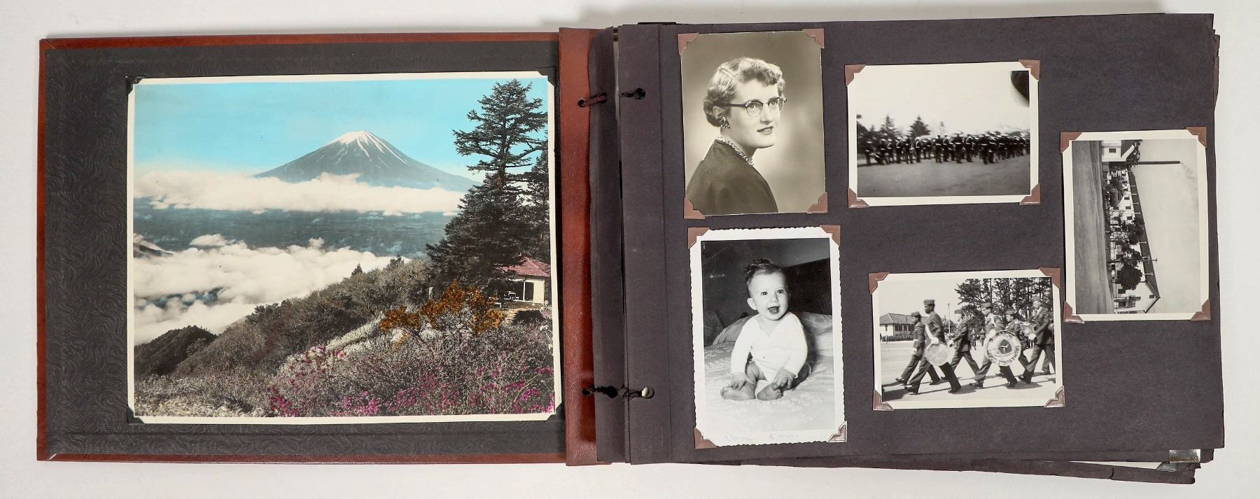 A photo album from the occupation of Japan by American GIs after World War II. Photos show life in the occupied country, including what amount to tourist and family shots. Most are 3"x 5" snapshots. Please see photos for more details.