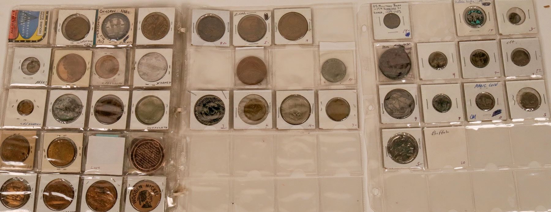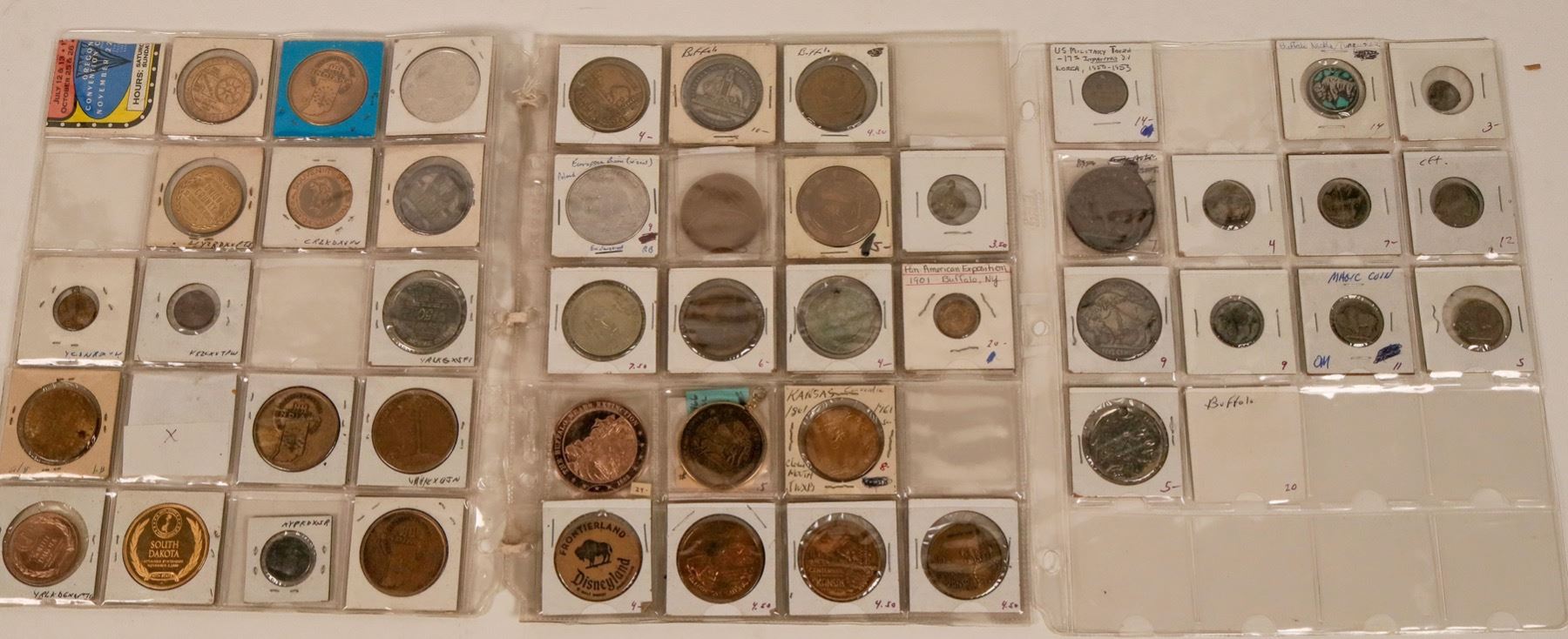 About 60. All pictorial - all buffalo. Buffalo Wyoming, Union County Pennsylvania, Black Hills, Buffalo New York, Poland European bison, Chadron Nebraska, U. S. Military Korea 1950, magic buffalo nickel, Concordia Kansas, etc. We have sorted these tokens into lots, but have not high graded them. There are sure to be some fabulous finds!