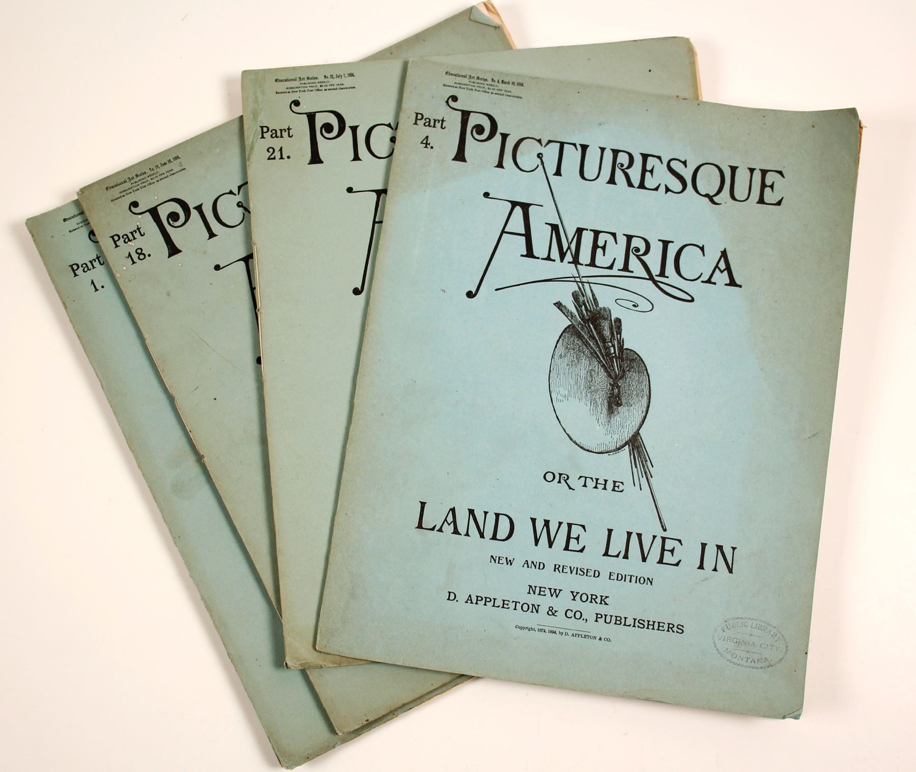 4 booklets from 1894 Parts 1, 4, 18, 21. Illustrated with woodcut US outdoor scenes. State: City: Date: 1894 HWAC# 86430