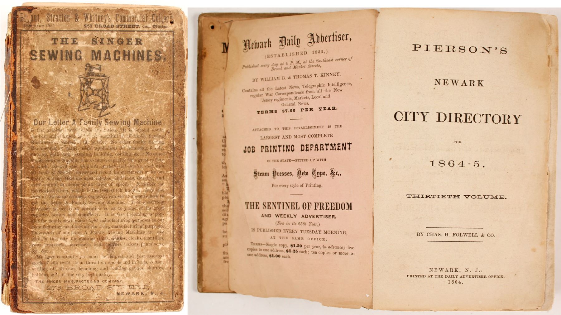 Folwell, Chas. H., Pierson‘s Newark City Directory for 1864-5, volume 30, printed at the Daily Advertiser Office, 1864.