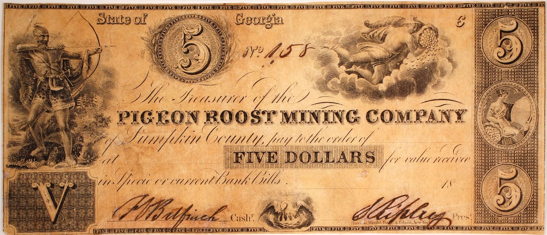 PMG net 25 Very Fine. Repaired. Signed Bulfinch/Ripley. Remainder. (Al Adams Gold Rush Memorabilia Collection) Date: Location: Auraria, Georgia HWAC# 51307