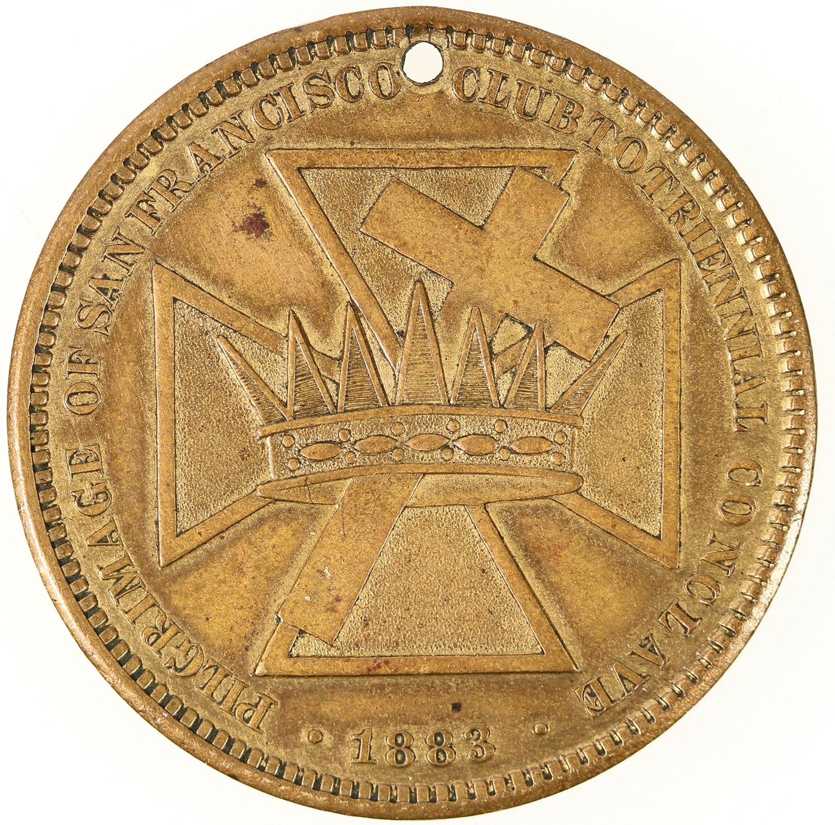 PILGRIMAGE OF SAN FRANCISCO CLUB TO TRIENNIAL CONCLAVE / (Knights Templar symbols) / 1883; Br., rd., 20 mm, holed.