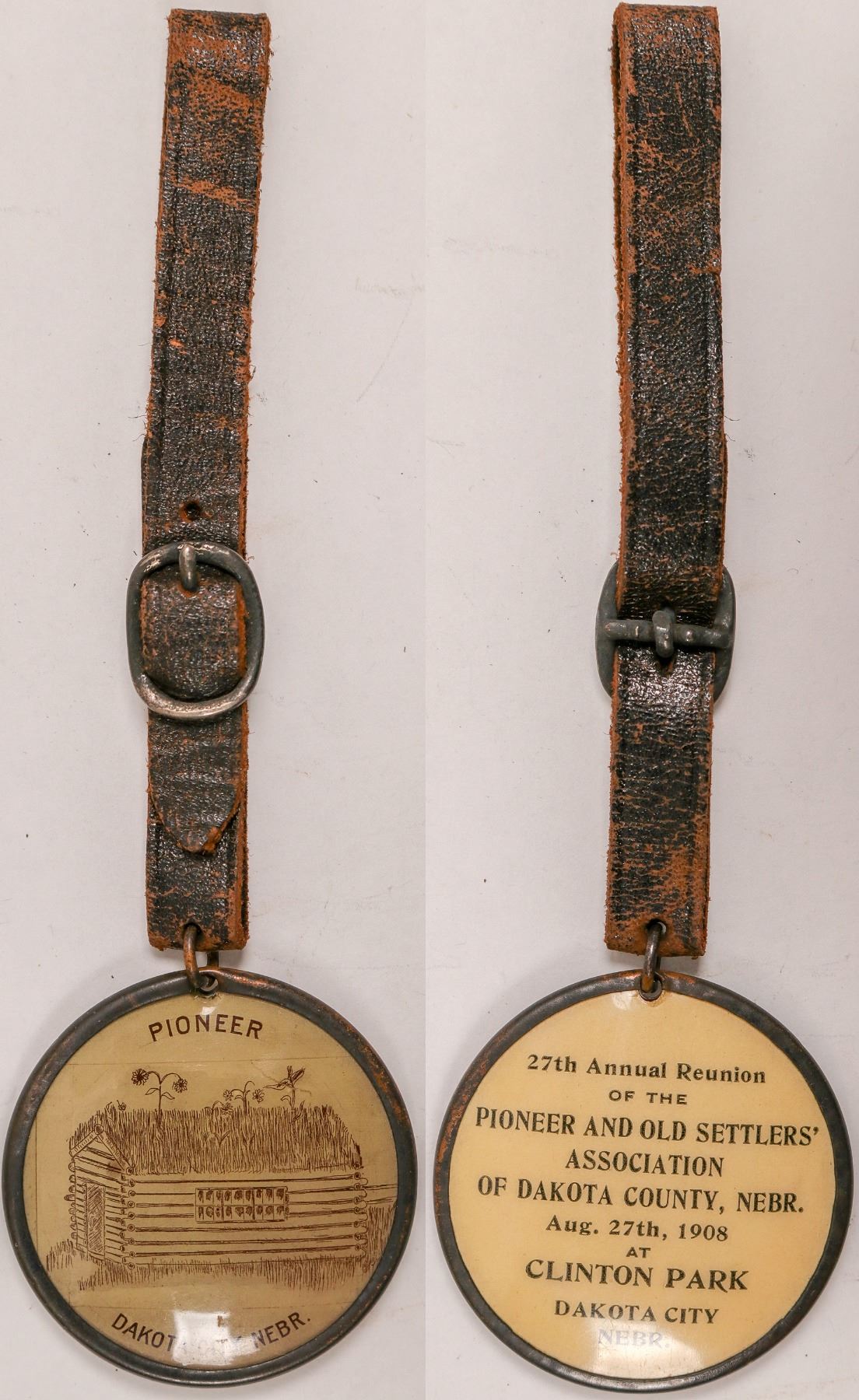 Fob depicting 27th Annual reunion of Pioneer & Old Settlers Association of Dakota County, Nebr.