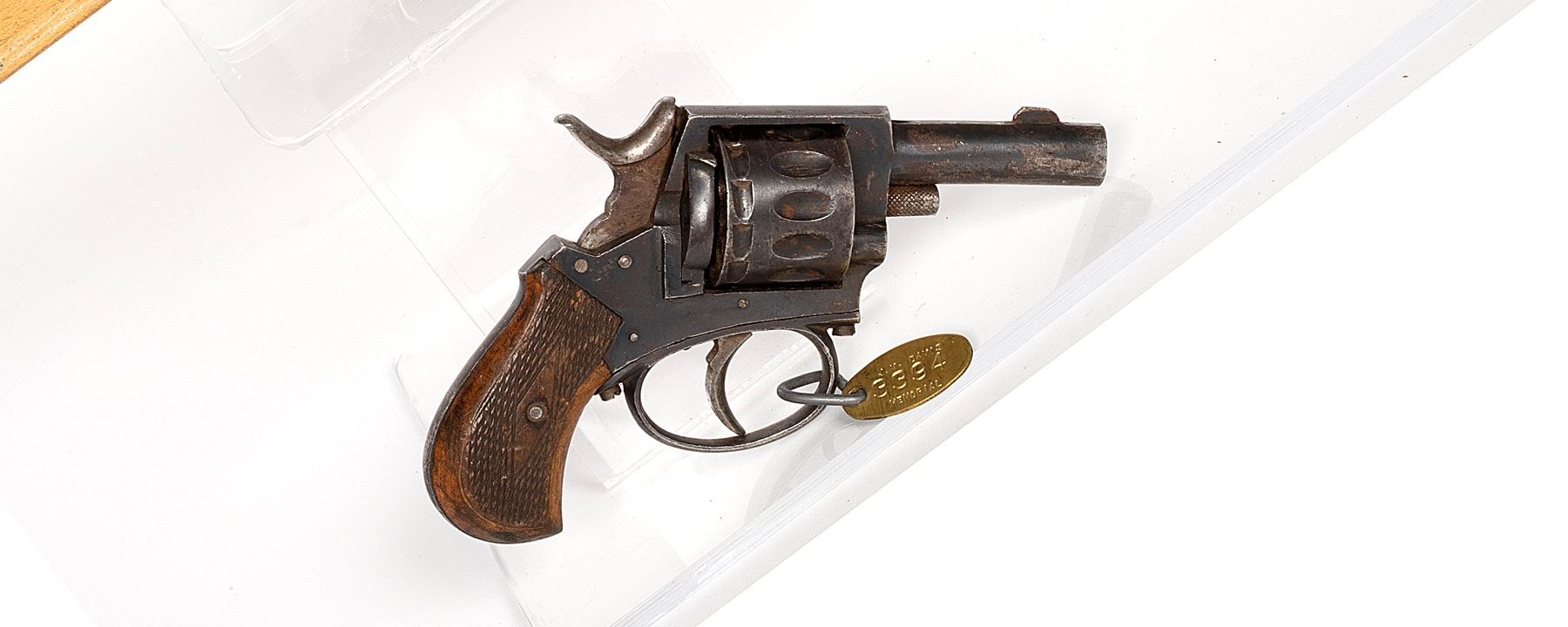 Pistol, Blank .22, Pocket Revolver, blanks, 12 shot. SN: 5, JMD Oval Tag: 3394, Condition: Fair, >