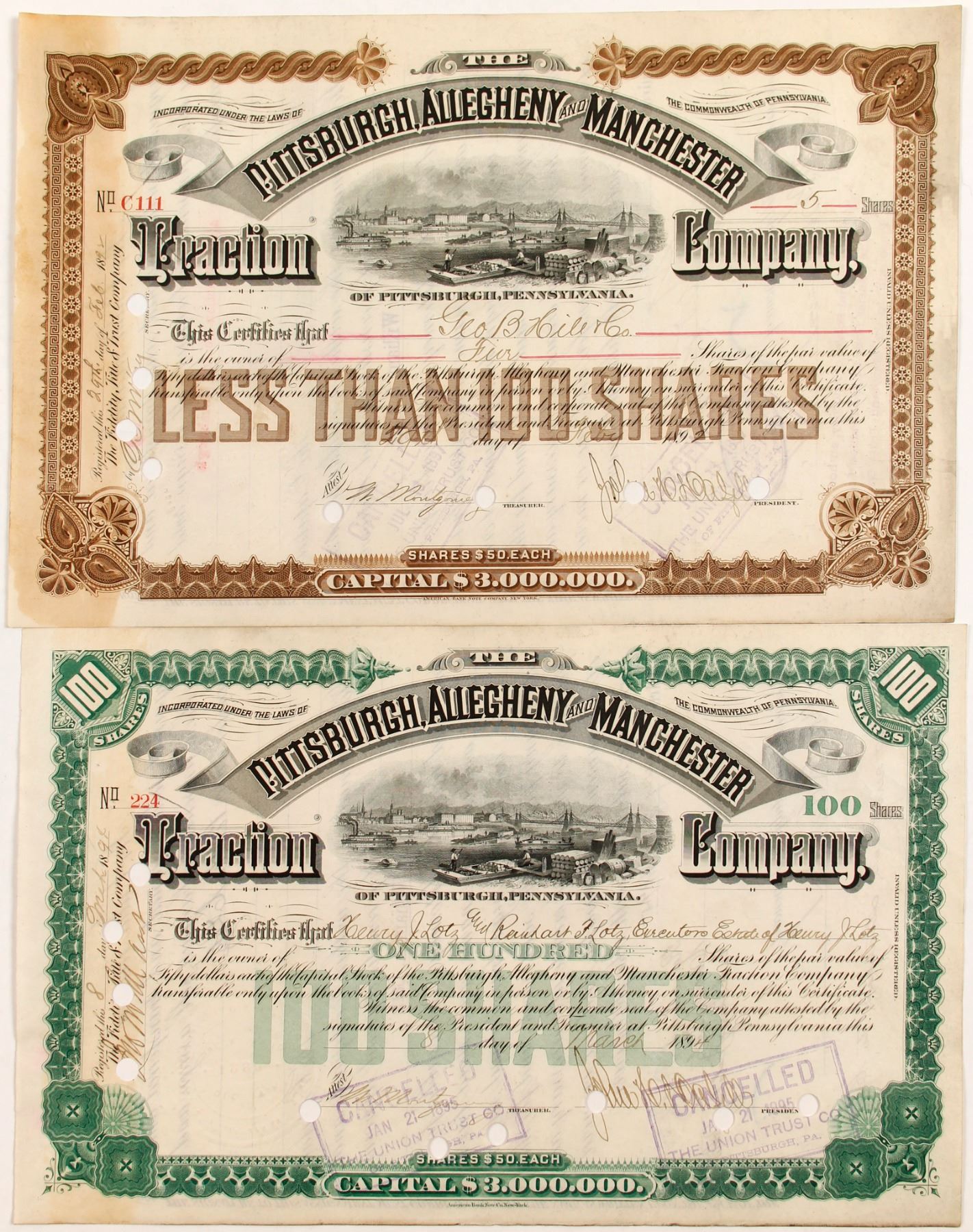 Pittsburgh, Allegheny and Manchester (Stock Certs) (84414)