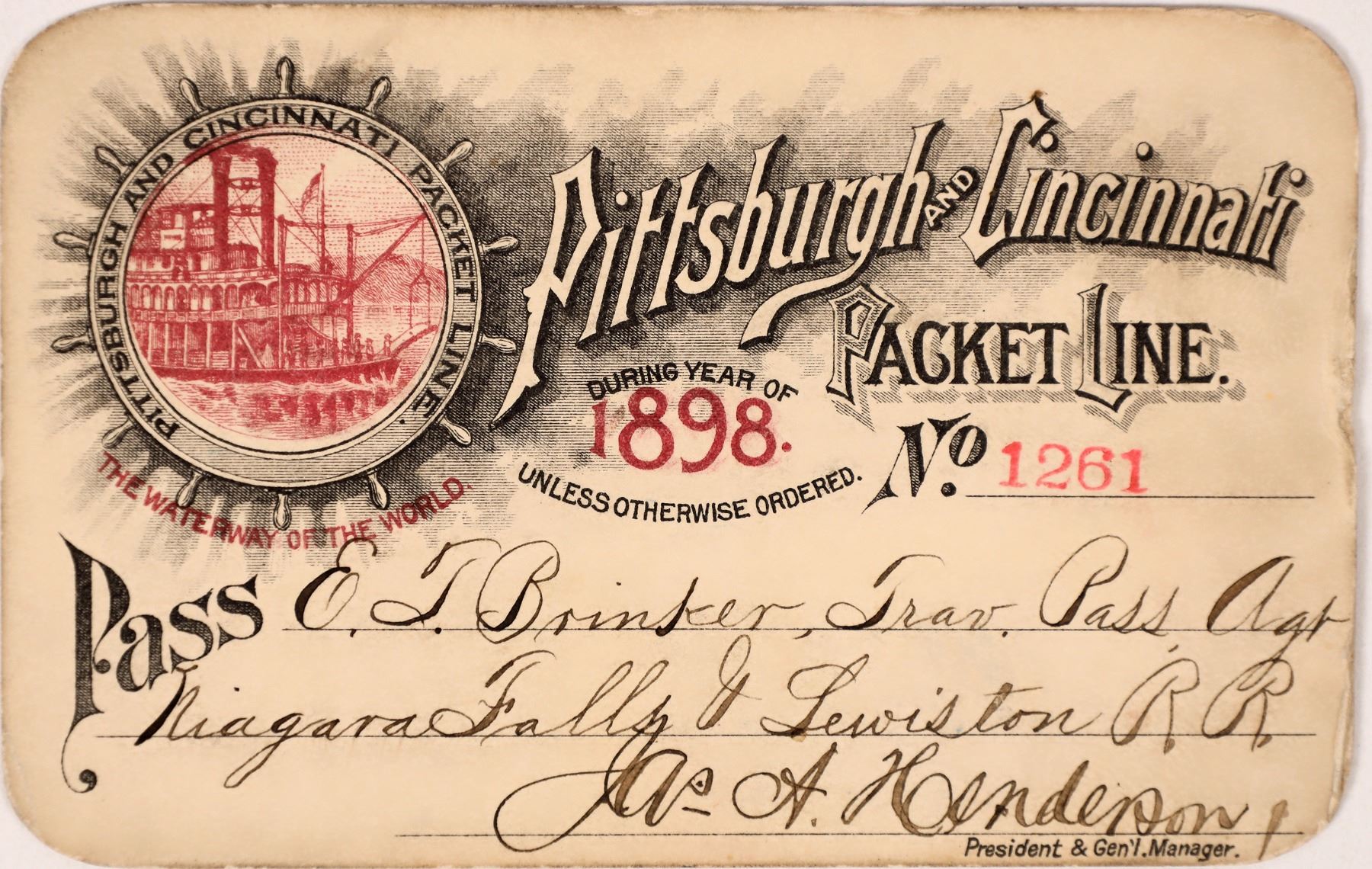 Pittsburgh & Cincinnati Packet Line Steamer Pass [164554]