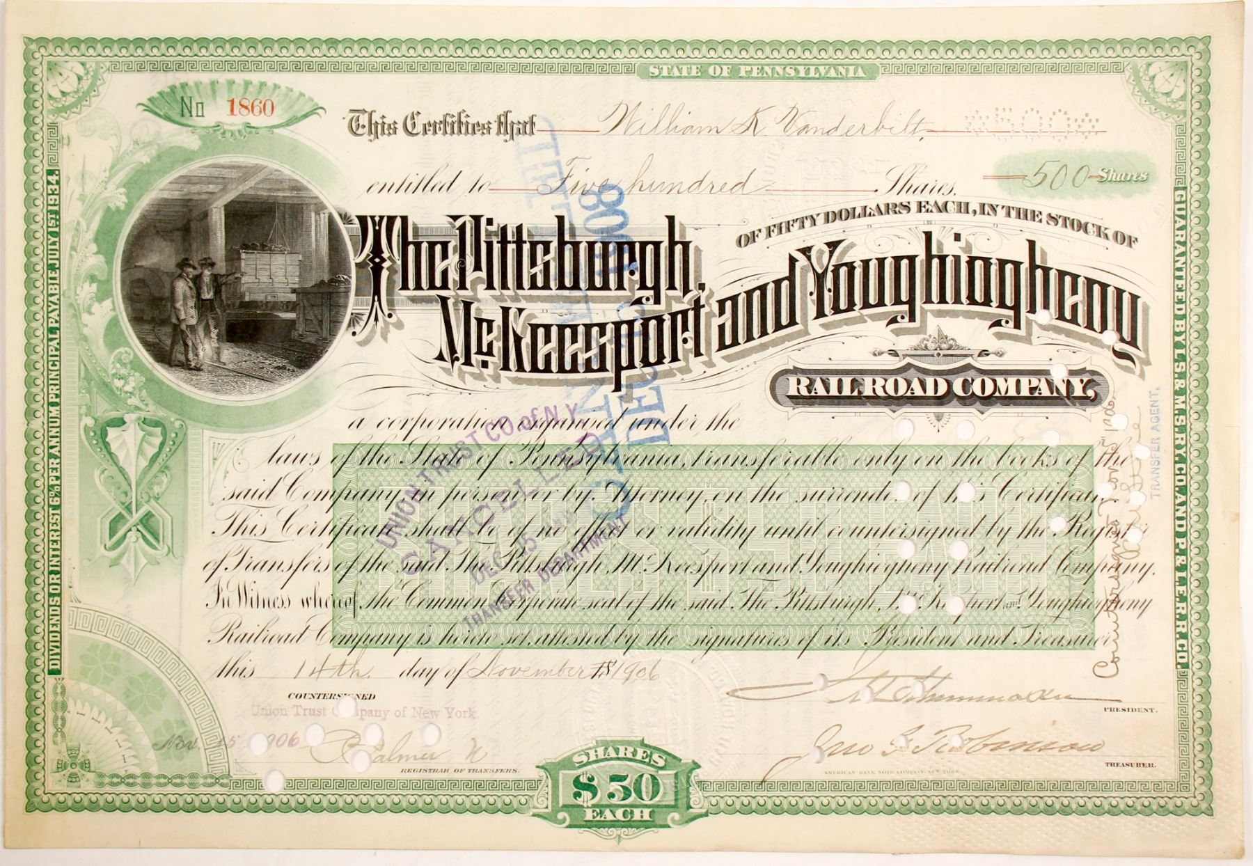 I/C #1860 to William K Vanderbilt 500 shares 1906 signed by President Illegible 1906. Signed on rear by WK Vanderbilt. Ken Prag Collection