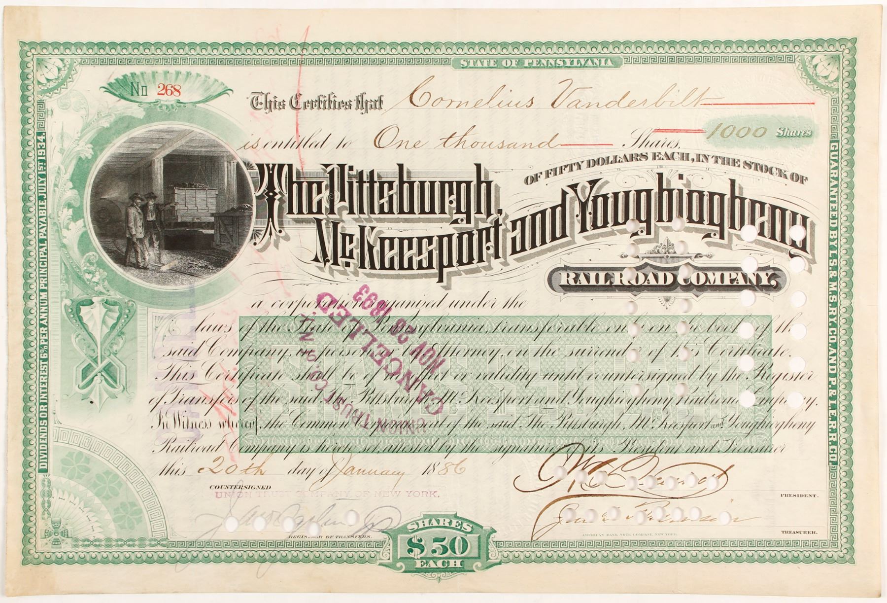 I/C #268 Cornelius Vanderbilt(rear signature) 1000 shares 1886 signed by president illegible. State: City: Date: 1886 HWAC# 83269