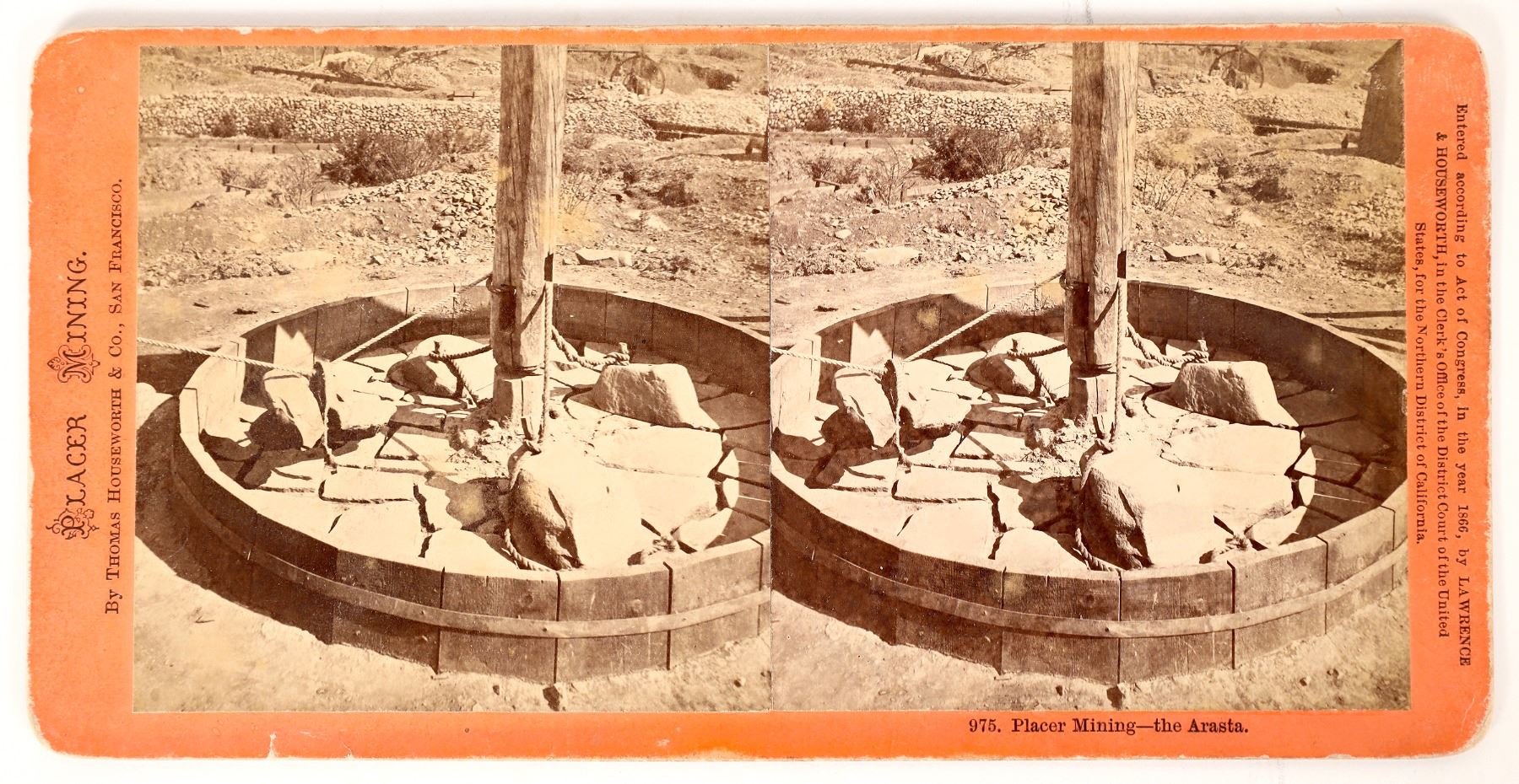By Thomas Houseworth of San Francisco. Location of placer mining arrastra is not identified. Very rare! The arrastra was an early method of crushing ore. Extremely nice. California Franklin Collection
