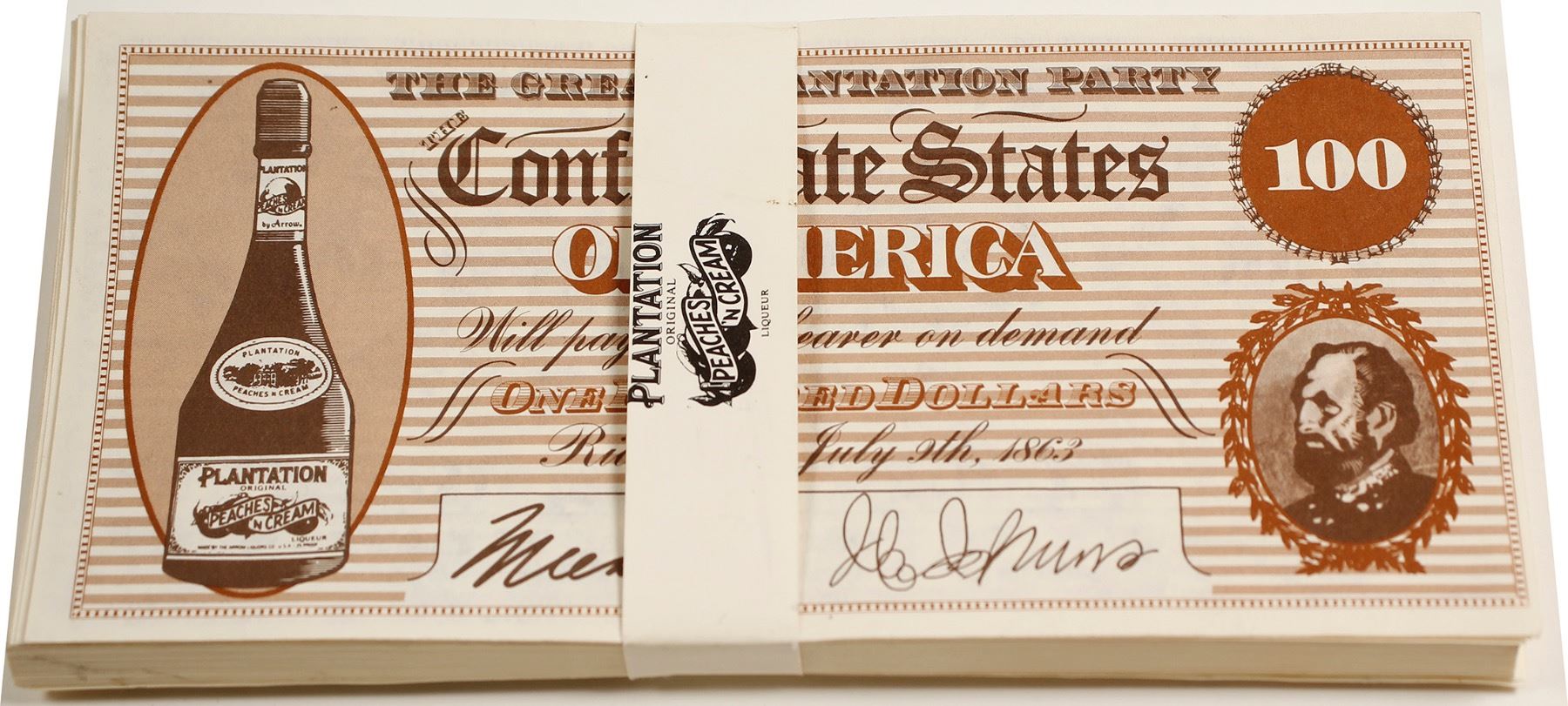 Paper banded bundle of approx 100 $100 brown currency adverts for this liquer. HWAC# 61375 Date: Location: