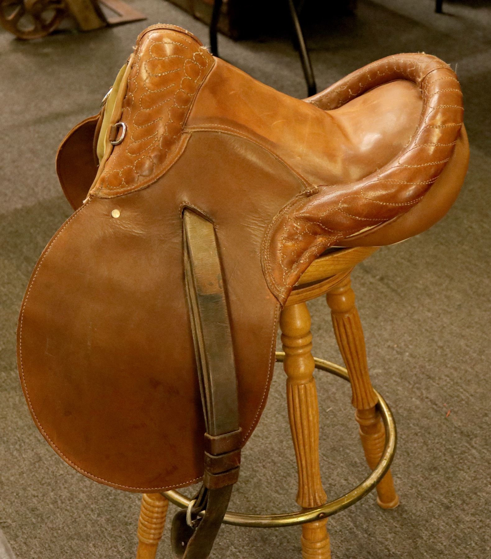 This is a beautifully restored plantation saddle (sometimes called a Kentucky roll-back) that has been used in Civil War re-enactments. The leather is honey colored and the stitching is hand done except the stirrup straps. Sometimes called a Buena Vista. Frequently used on gated horses. City: State: Date: