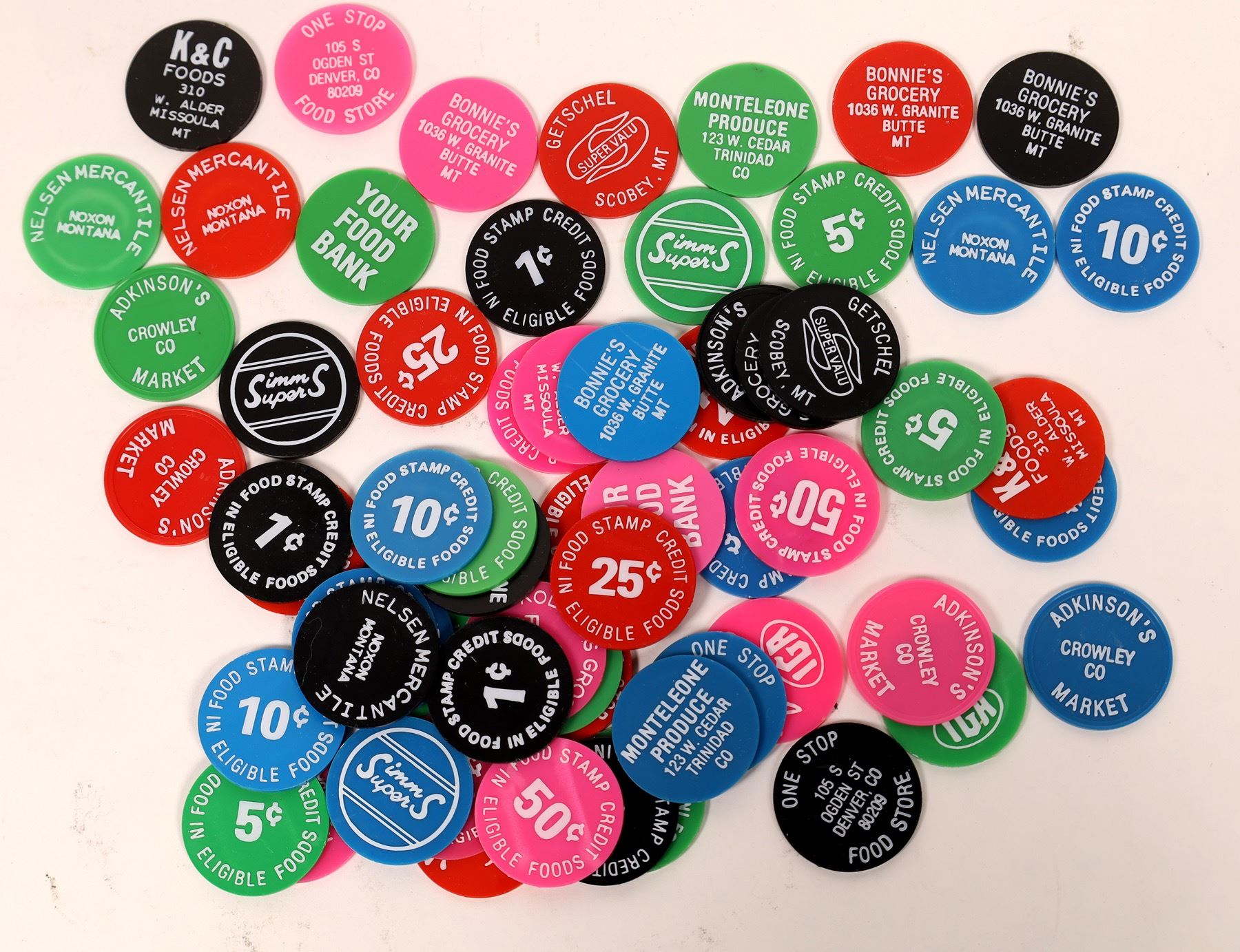 Plastic Food Stamp Tokens from Montana, Nevada & Colorado Stores  [131226]