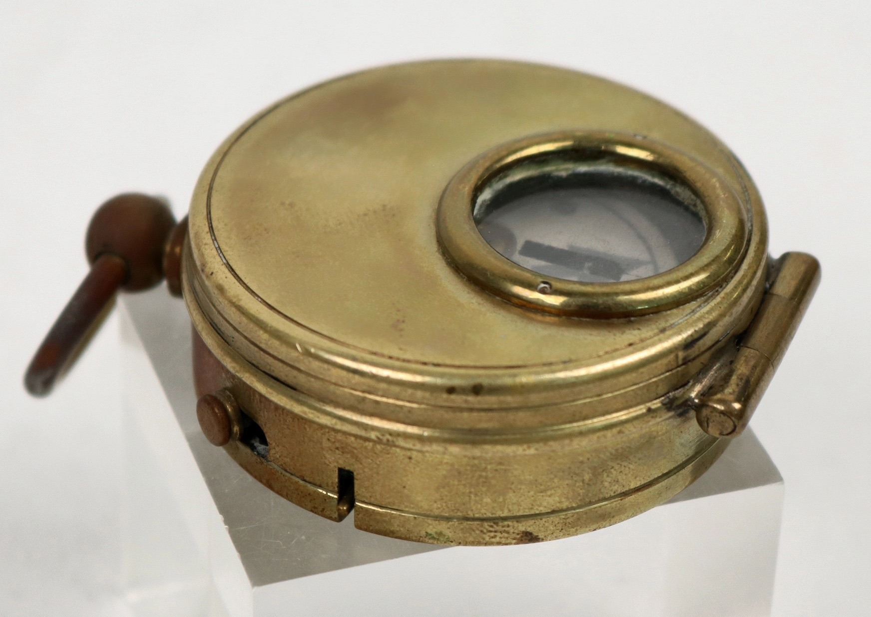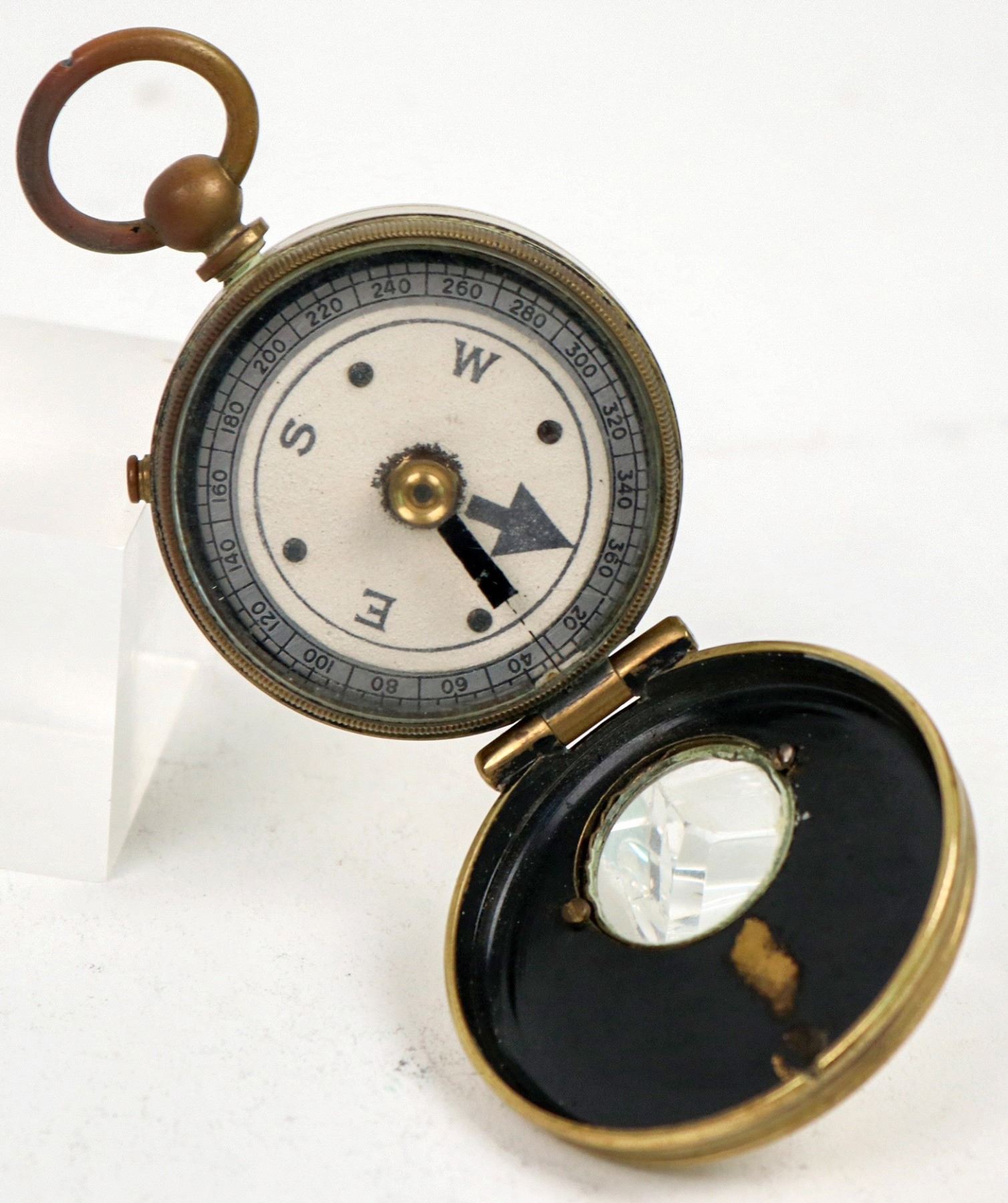 This is a pocket compass with cover and window for quick views issued to "Epson YMCA/C.D. Wells/ 1922" with card lock. In working order. 2.o in. diameter. Please see photo for details.