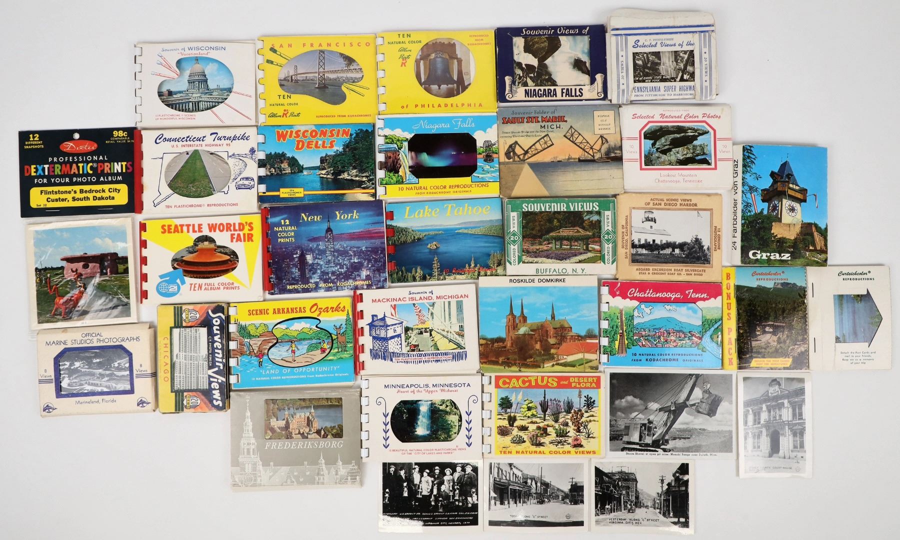 Approx. 30 plus. Picture pocket booklets of various places I.E; Buffalo, New York. San Diego, Chattanooga, Arkansas, Wisconsin , Seattle Worlds Fair and approx.. 24 more.