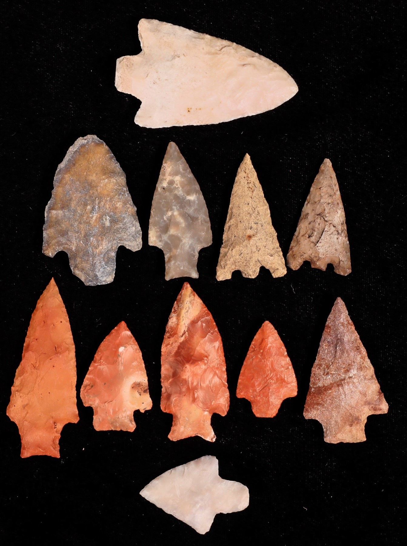 This lot has eleven points in several styles that include several Hernando points, Ley points, all from the central Florida Orange County area. From 1.75 in./ 44 mm to 3 in./ 76 mm in length. From the Bracken collection. Please see photos for detials.