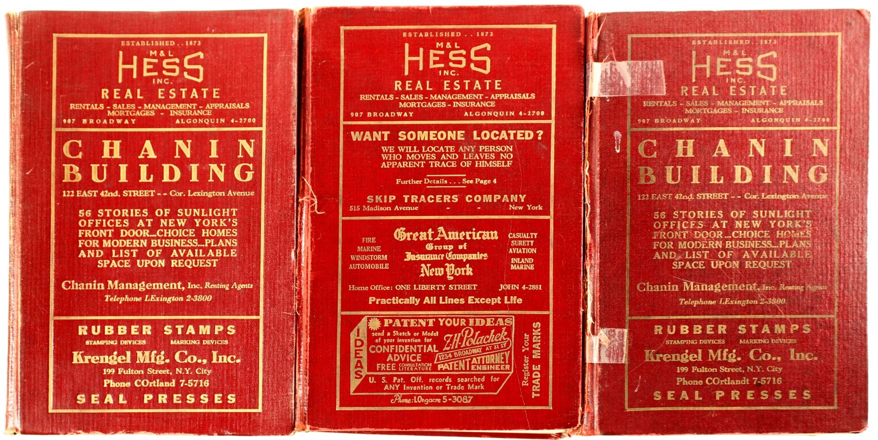 1935, 1936, 1937 Corporation directories. Original red binding with ads. very good to fine. City: New York State: New York Date: HWAC# 81152