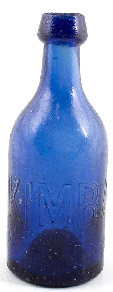 Kimball & Co ( 1852-1856 ): Medium cobalt blue. Overall scattered wear and pitting.Very crudely made top, but no damage .Nice stretch marks and bubbles , in the neck area .Needs cleaning to make it sparkle . HWAC# 30256 Date: Location: Marysville, California