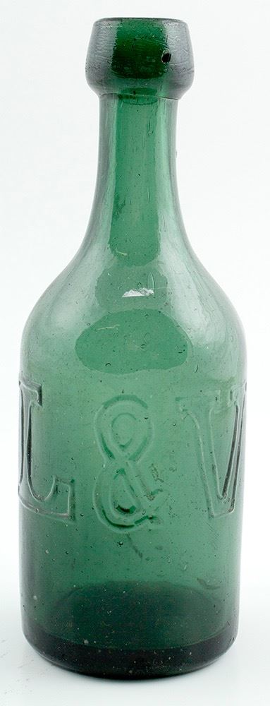 L & V (m 1852-1857) : Medium forest green. Clean and shiny. Metallic pontil. But, there is a 1" gauge, near the right mold seam , and a 1/2" flash on the same side. Otherwise a nice item. No Chips. HWAC# 29056 Date: Location: Stockton & Marysville, California