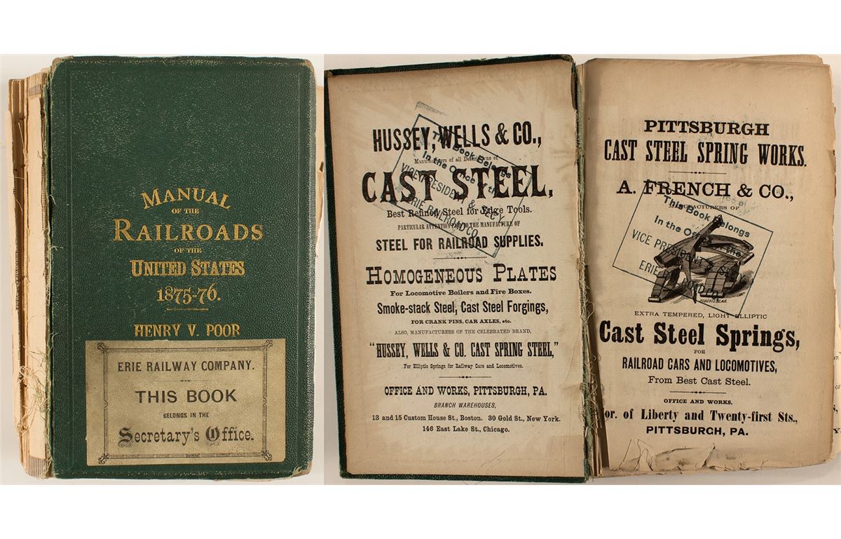 This is a list of "all the railways in North America and of the leading organizations auxiliary to the Railway System. Lists of Officers of South American and Hawaiian Railways.” Compiled from official information in Poor's Railroad Manual. 844 pages 66 pages of advertising. There are no other listing of this edition in OCLC. Rarity: [i].