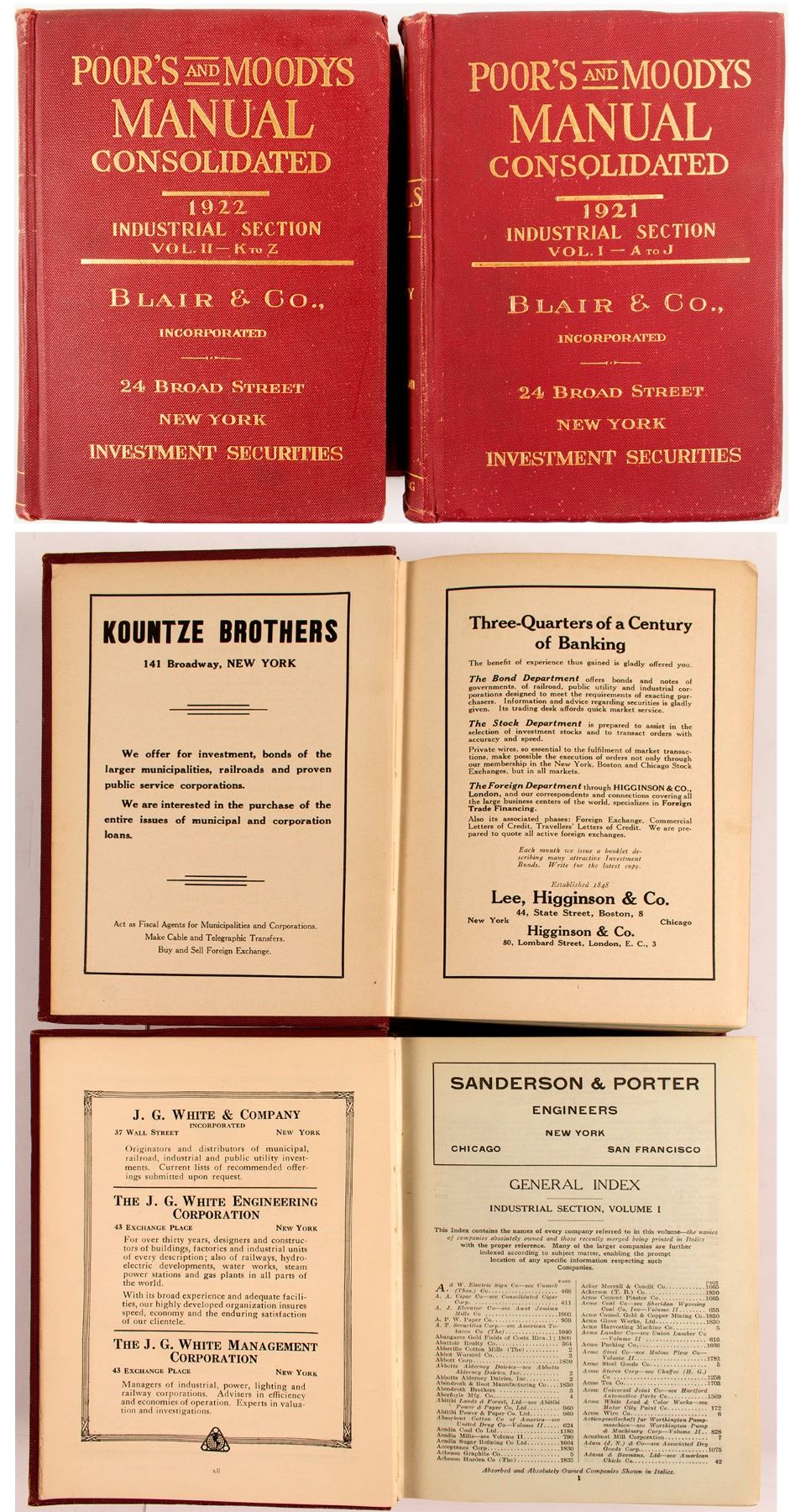 Poor's and Moody's Manual Consolidated 1921, 2 Volumes  (52219)