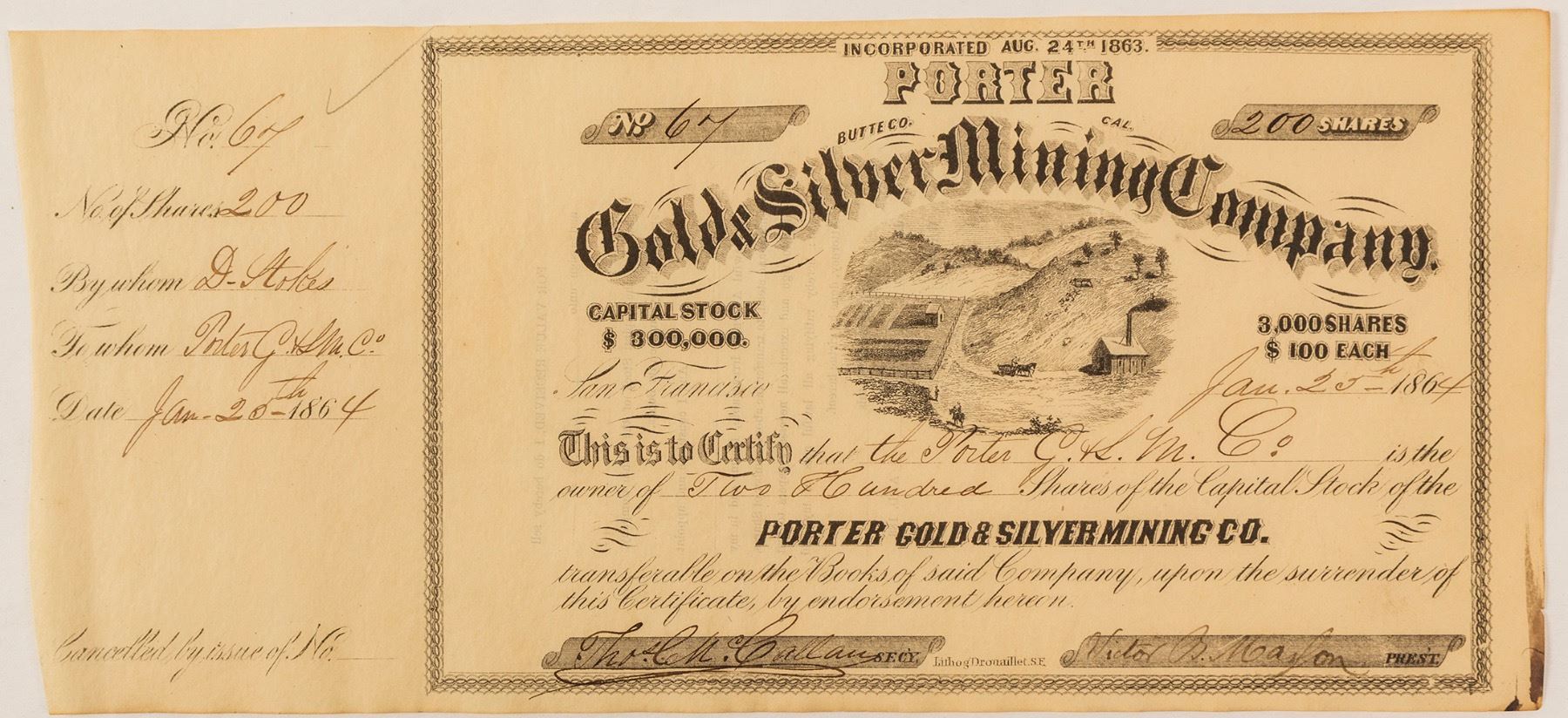 Choice Porter G&SMC stock, issued and uncancelled to the company itself, Jan 25, 1864.