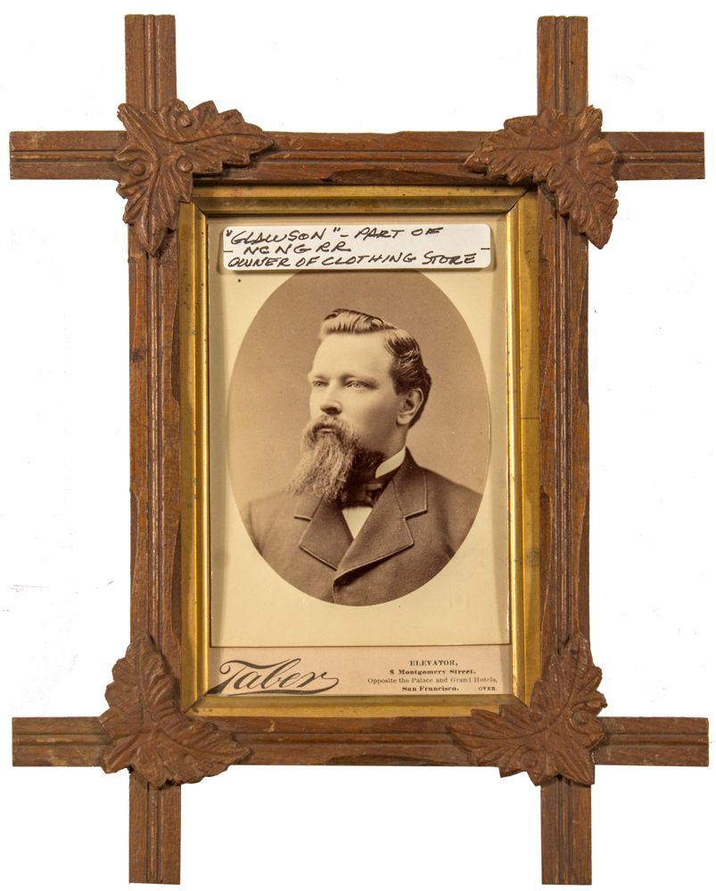 Formal portrait of Mr. Glasson, reportedly part of the Nevada County Narrow Gauge Railroad, Coleman Store, and the Grass Valley Gas & Electric Company.
