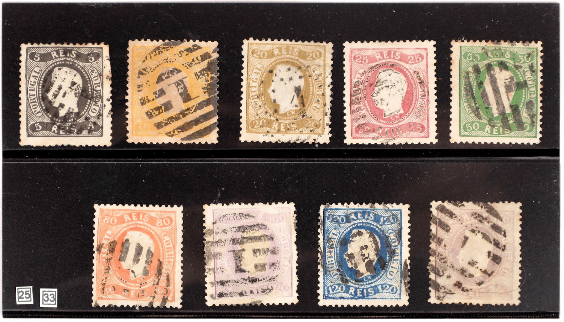Portugal. 1867-70 first perforated set of 9 (Scott #25-33), please see scans. Nine total