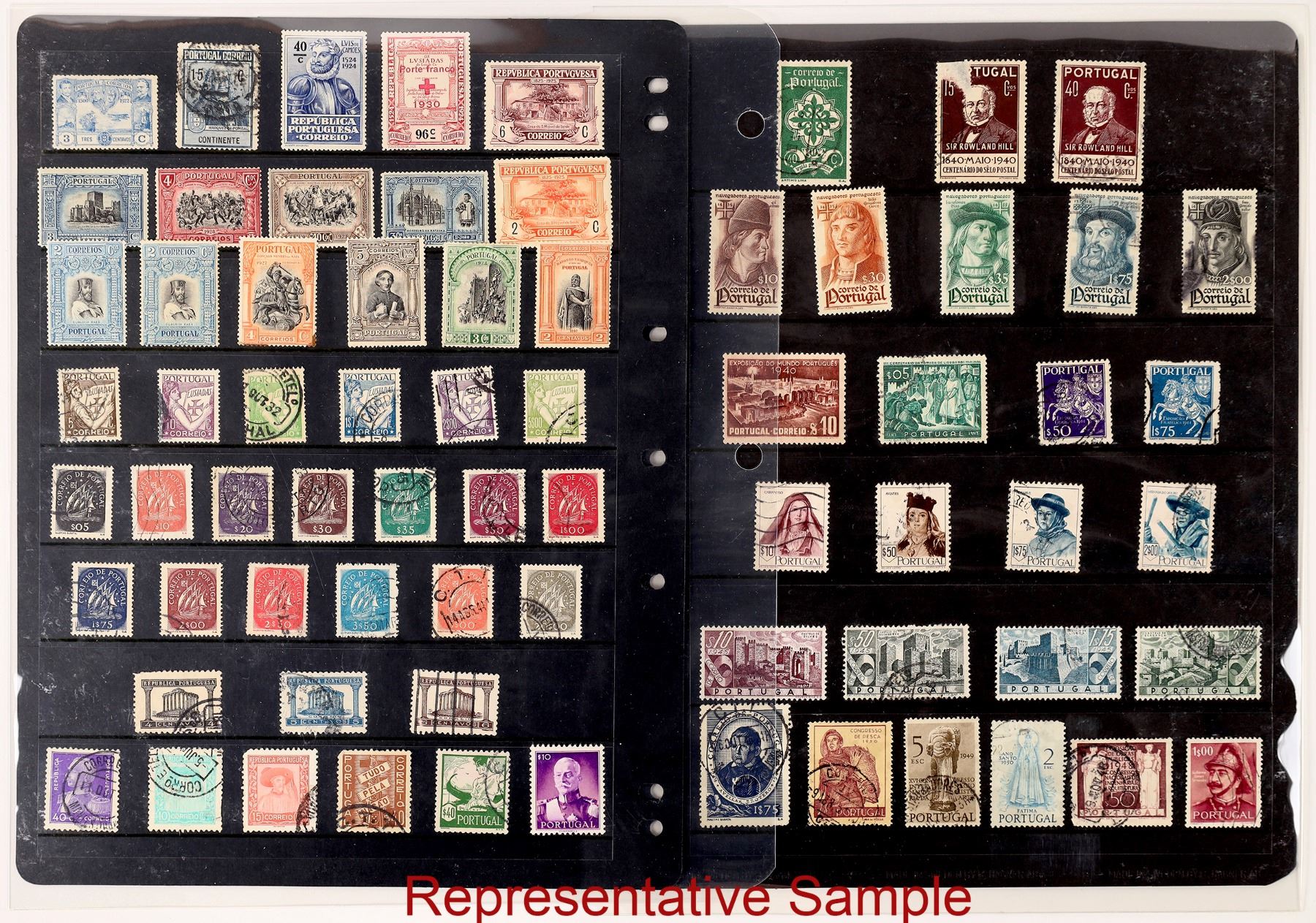Portugal and Colonies. Balance of about 500 different in a binder filled with stock sheets, some good early colonies, good lot for the generalist or eBay seller. Colonies include: Angola, Angra, Azores, Cape Verde, Macao, Mozambique, Nyasa, Ponta Delgada, Portuguese Congo, Guinea, India, St. Thomas & Prince Islands, Timor.