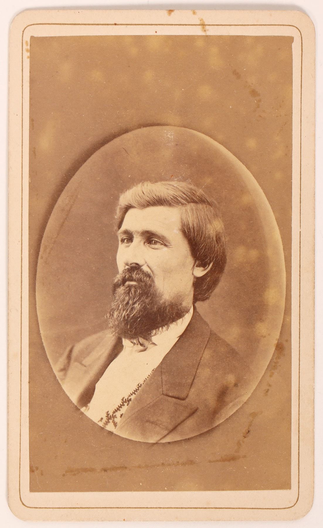 CDV of California outlaw Tiburcio Vasquez. It measures 2.5"x 4.5".with D.S. Boydston Photographer, Volcano.