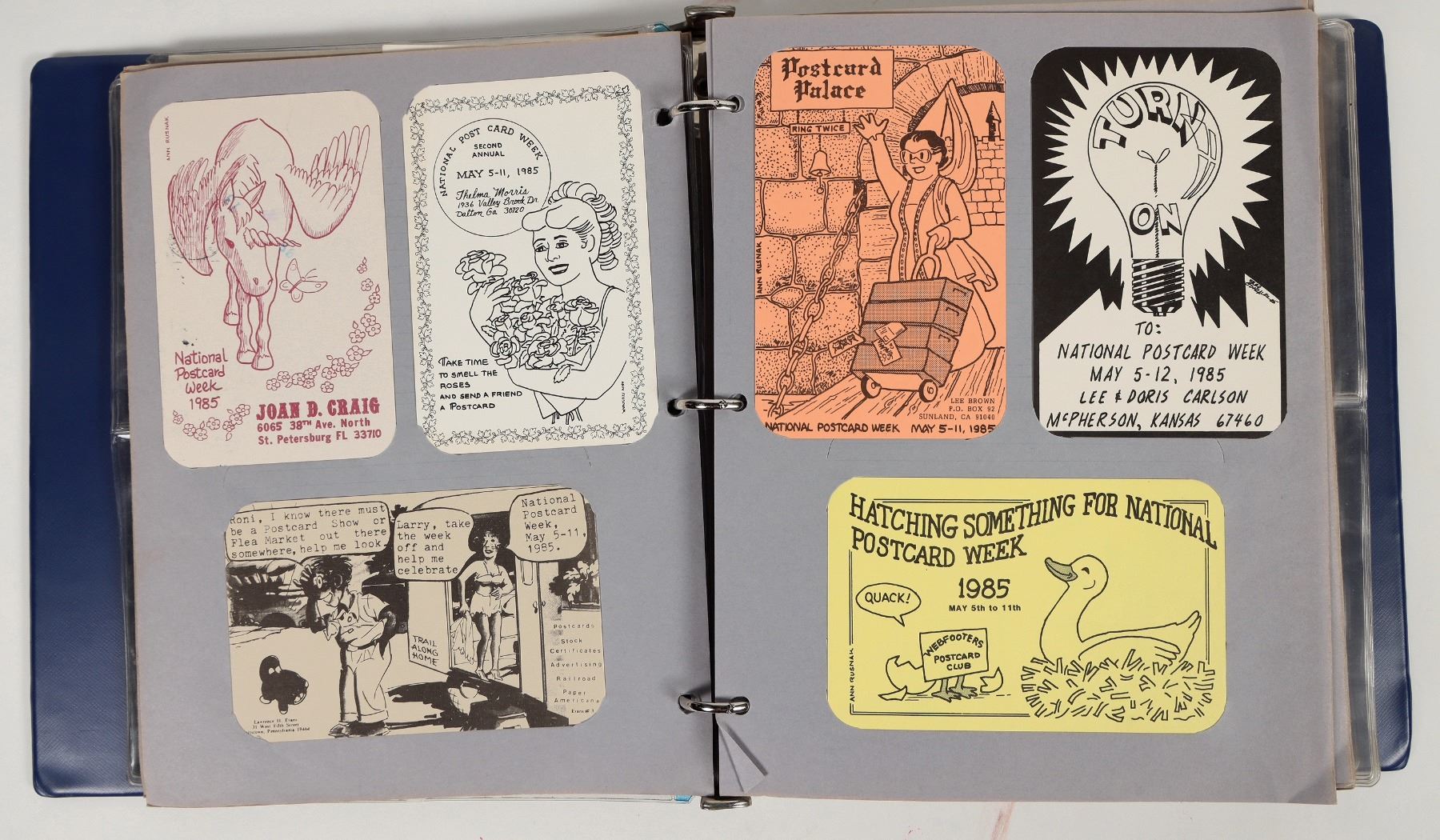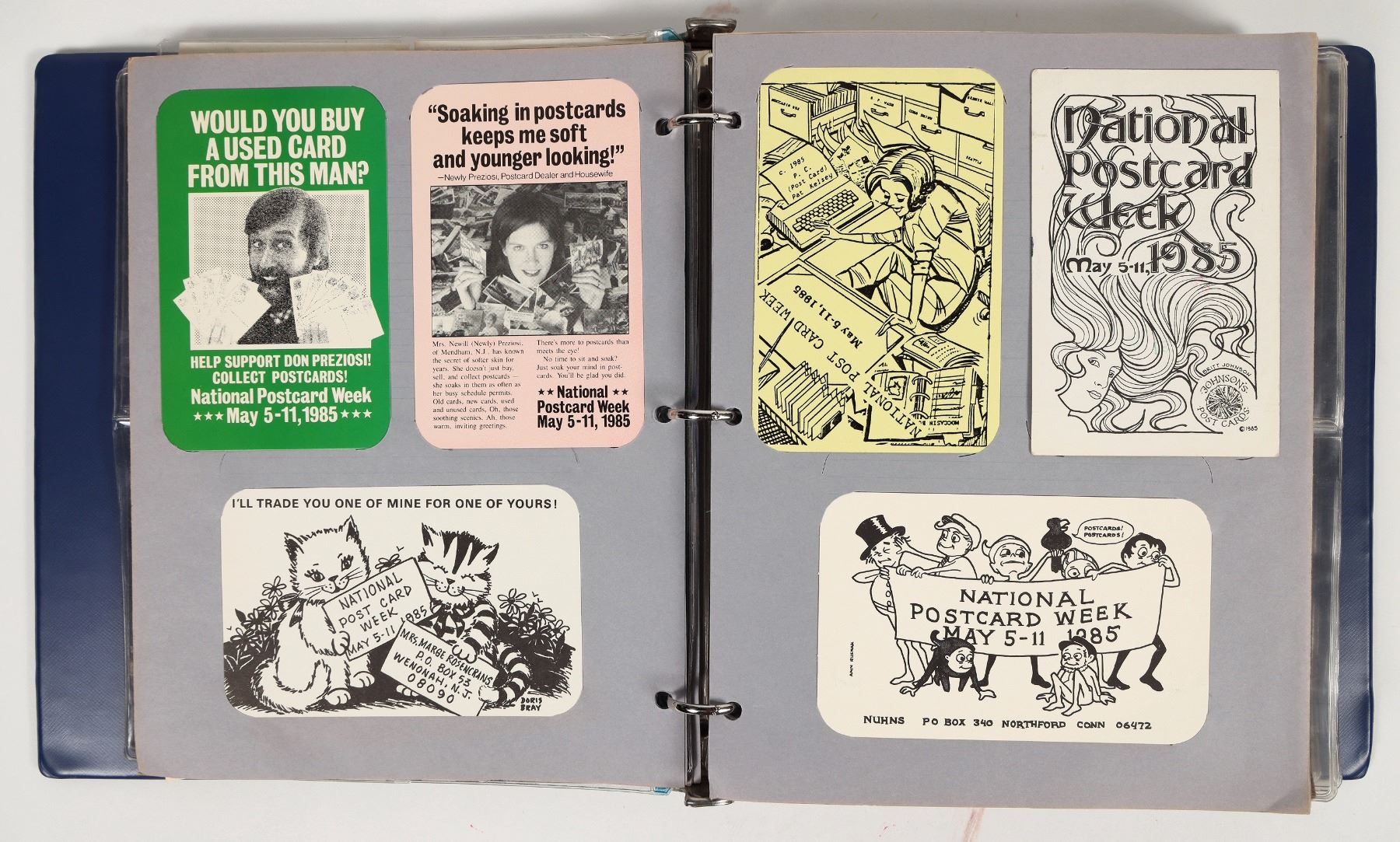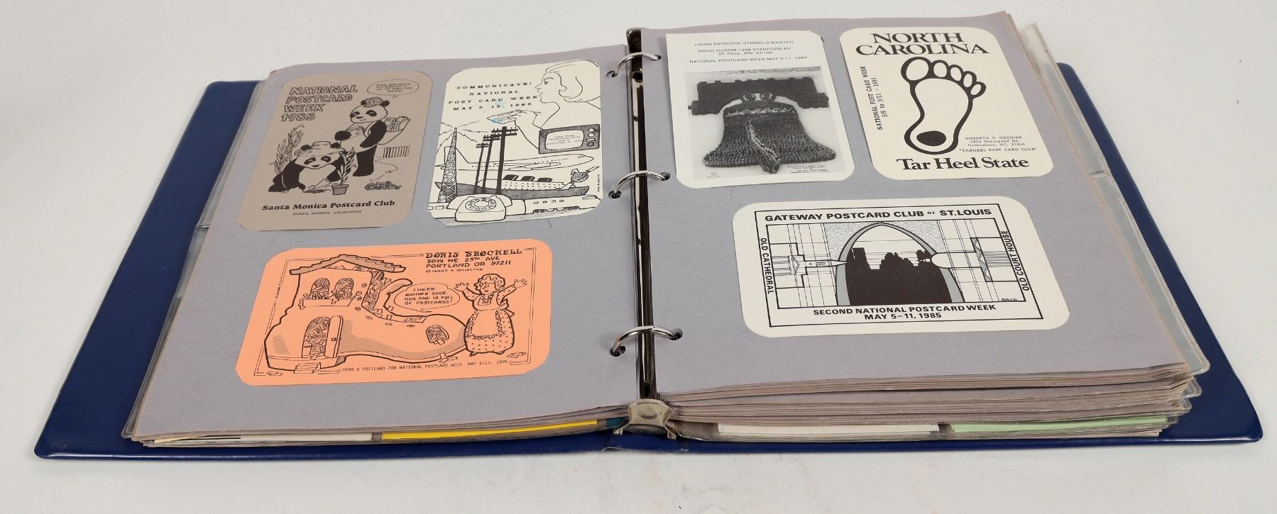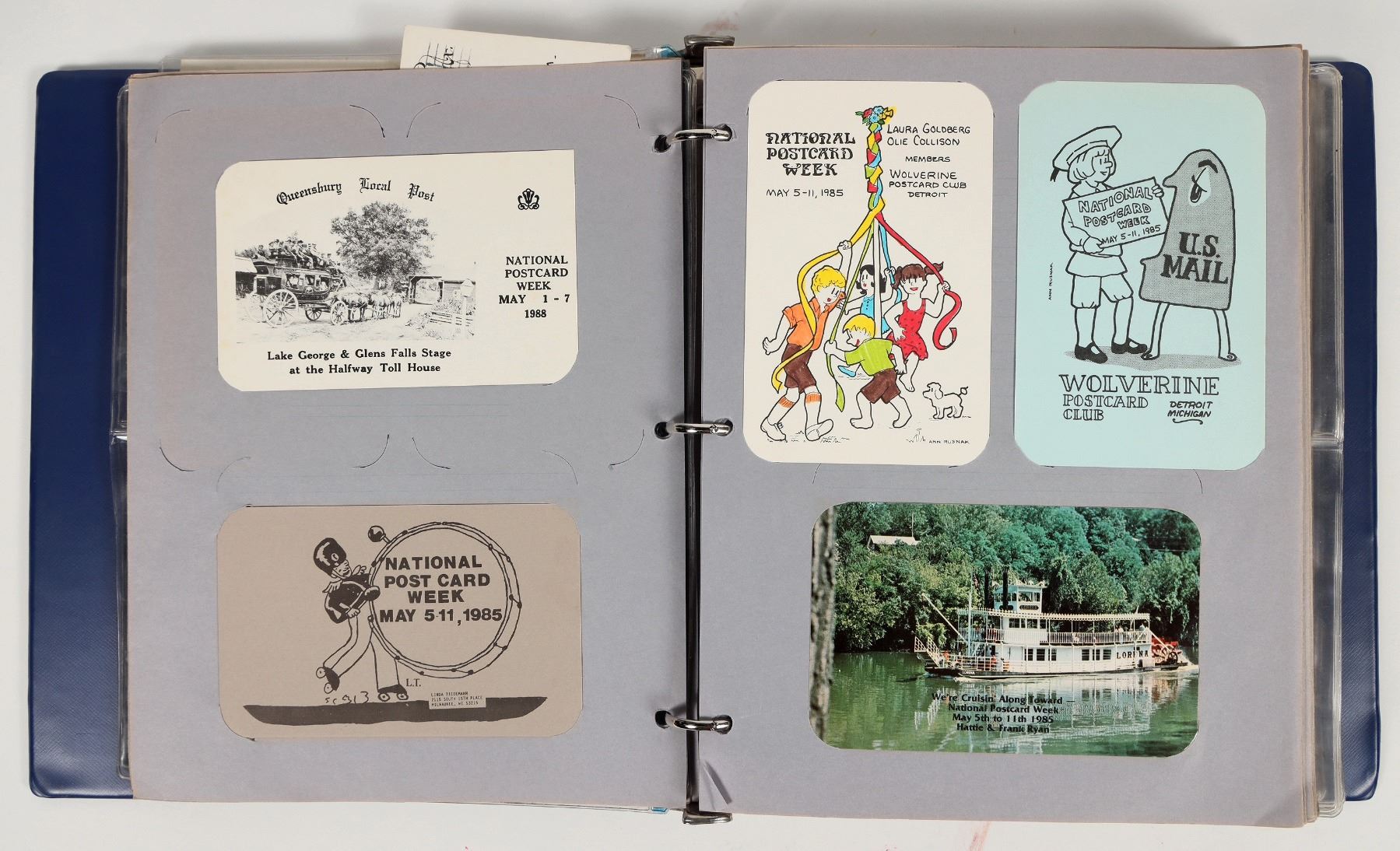 Post Card album 47 pgs. of postcards from 1884-87. The cards cover a range of National Postcard week in various areas of the country. There are cartoons, photos, local places. All in excellent cond.