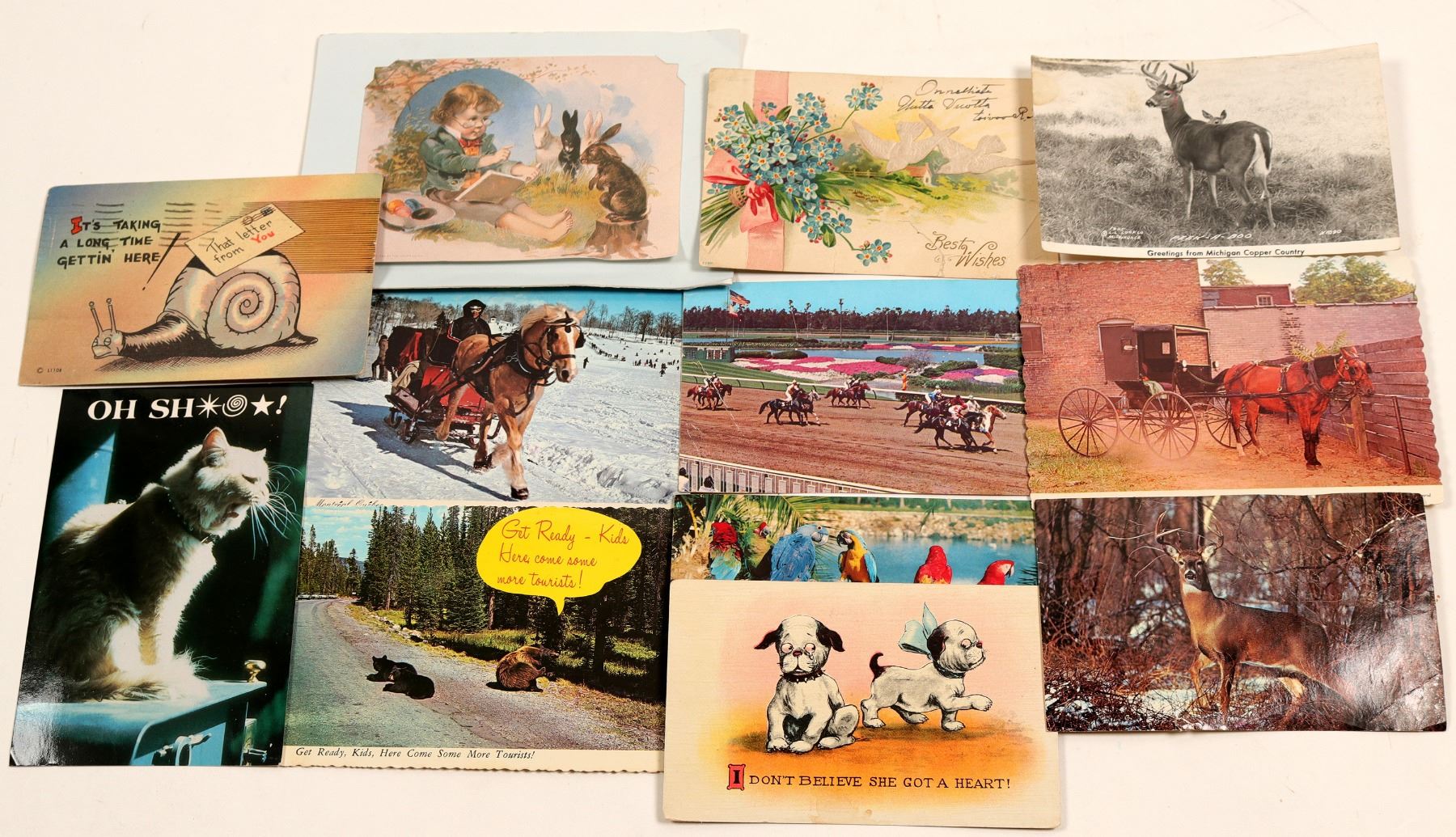 Here we have a nice collection of animal post cards . There are all kinds of animals, bears, parrots, deer, horses, cats, puppies, and a lot more. They are doing all kinds of things. Good condition ( RH).
