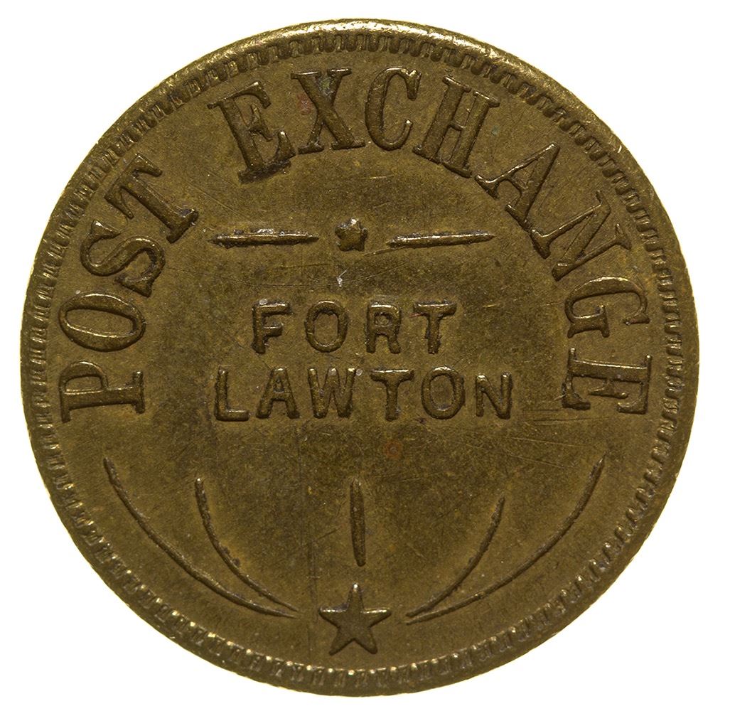 Obv.: Post Exchange / Fort / Lawton. Uniface. Rd., Br., 21mm. City: Fort Lawton State: Washington Date: ID# 45459