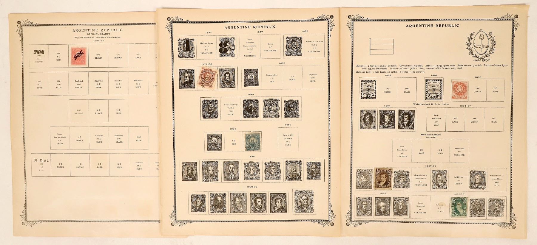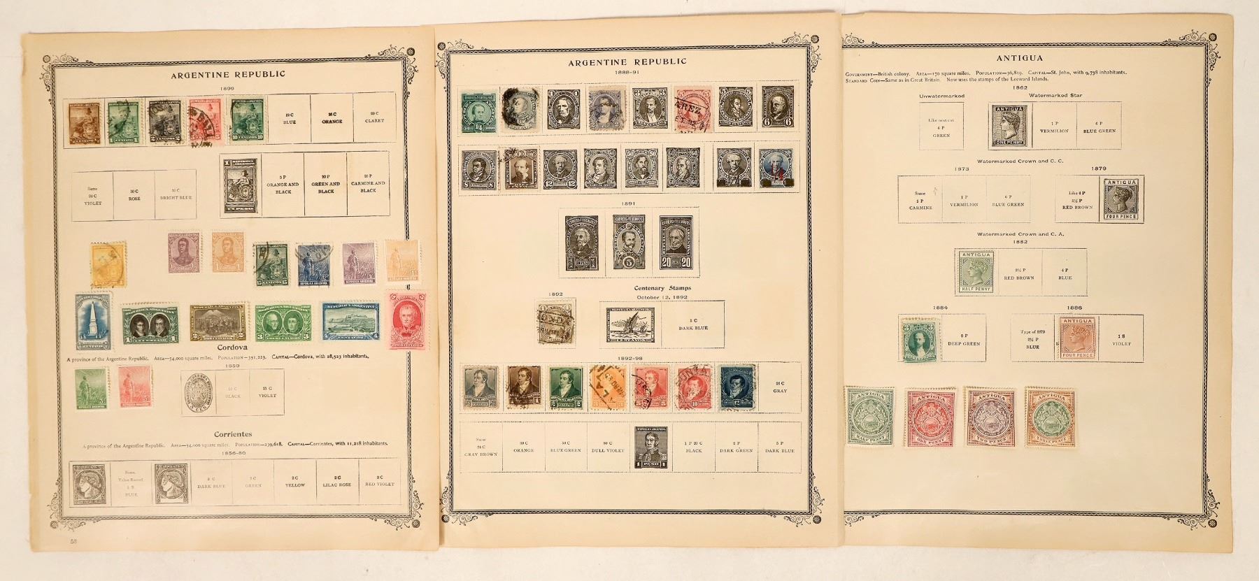 Collection of about 45 early stamps from Argentina and Antigua, c1862-99. Includes 6 from Antigua, the rest from the Argentine Republic. Denominations- Antigua, half penny to four pence; Argentina, 1/2-16. Mix of used and mint.
